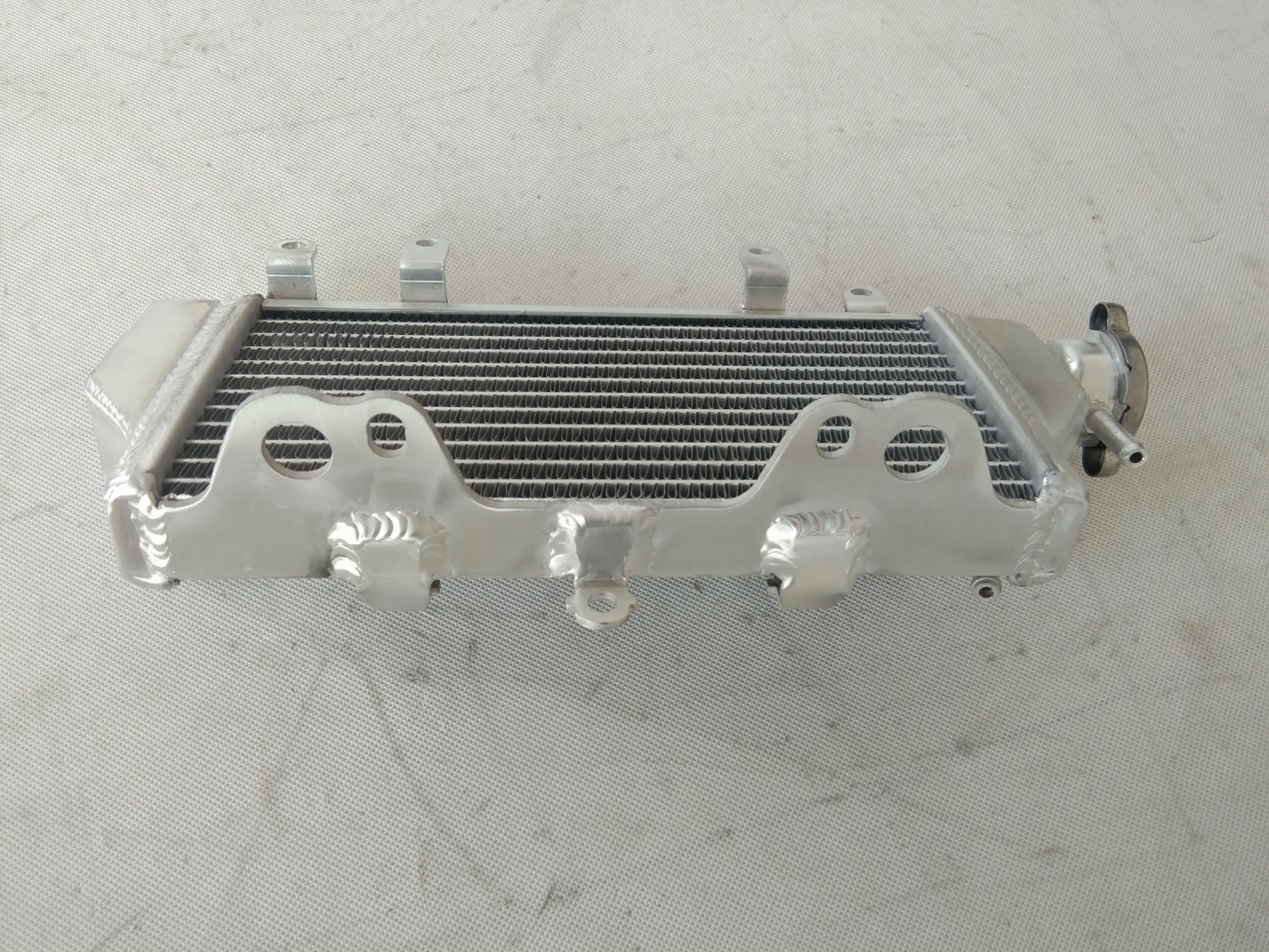 This high-performance aluminum radiator, designed for Yamaha WR250X (2008-2011) and WR250R (2008-2020), features T-6061 aluminum construction with TIG-welded tanks and a vacuum-brazed core for durability and enhanced cooling capacity of approximately 40% over standard radiators. Its sleek, polished aluminum tanks and sturdy design ensure reliable heat dissipation and easy installation with minimal modifications. Brand new and backed by a 1-year warranty against manufacturing defects, this radiator provides a long-lasting, efficient cooling solution tailored for serious motocross enthusiasts seeking superior performance and durability.