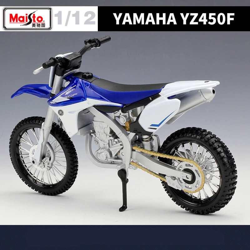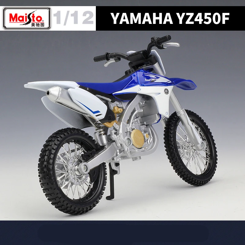 Experience the thrill of motocross with this highly detailed 1:12 scale diecast model of the Yamaha YZ450F alloy race motorcycle. Crafted from alloy and plastic, this realistic replica features vibrant blue and white bodywork, a sleek ergonomic saddle, textured black tires with aggressive off-road tread, silver spoked wheels, and finely detailed engine components with metallic and gold accents. Measuring approximately one-twelfth of the actual bike, it captures the dynamic spirit of a Yamaha YZ450F cross-country and street motorcycle, perfect for collectors and enthusiasts aged 4 and up. Available in assembly, foam, or retail boxes, this model offers exceptional detailing and durability for display or display-ready collections.
