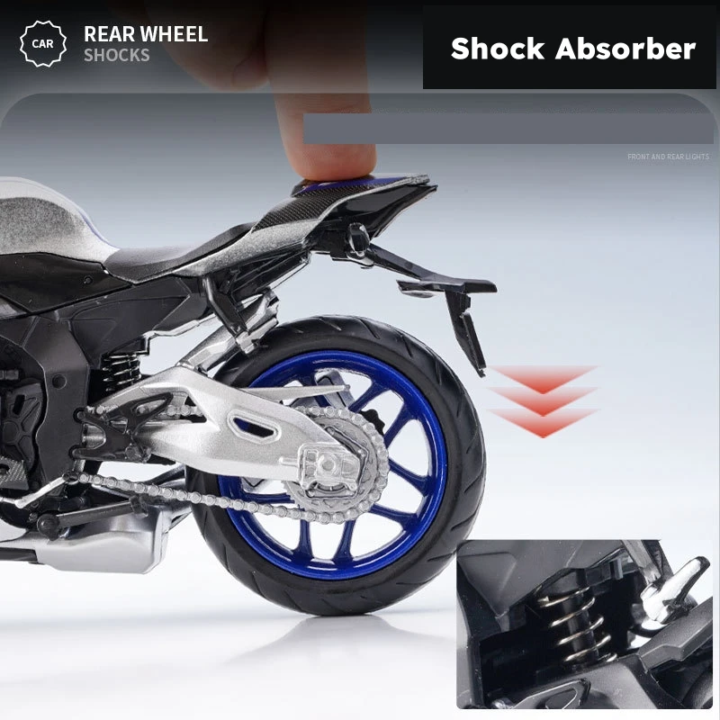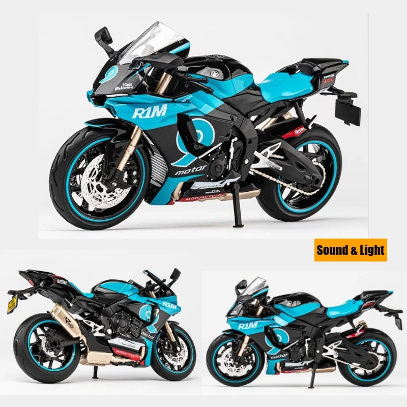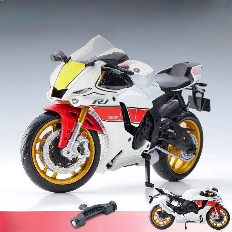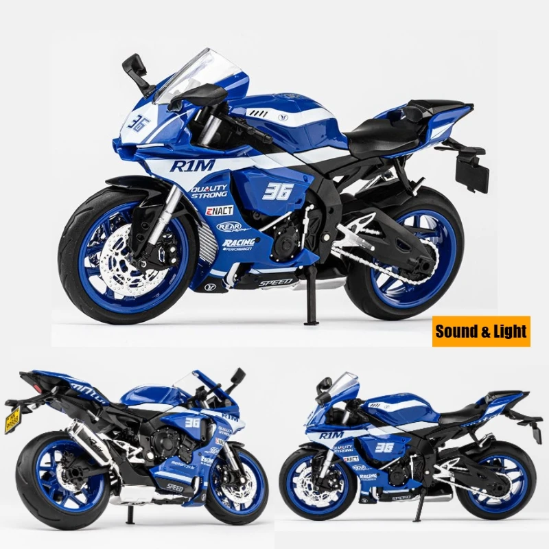 - Advanced 1/12 scale construction using high-quality diecast metal for durability and visual appeal, closely resembling the real Yamaha YZF-R1M in size and detail.