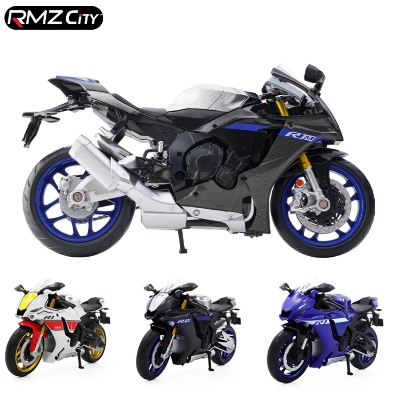 - Vibrant color options including YAMAHA YZF-R1 and YAMAHA YZF-R1M, with glossy finish and contrasting black components like the seat, handlebars, and frame for realism.