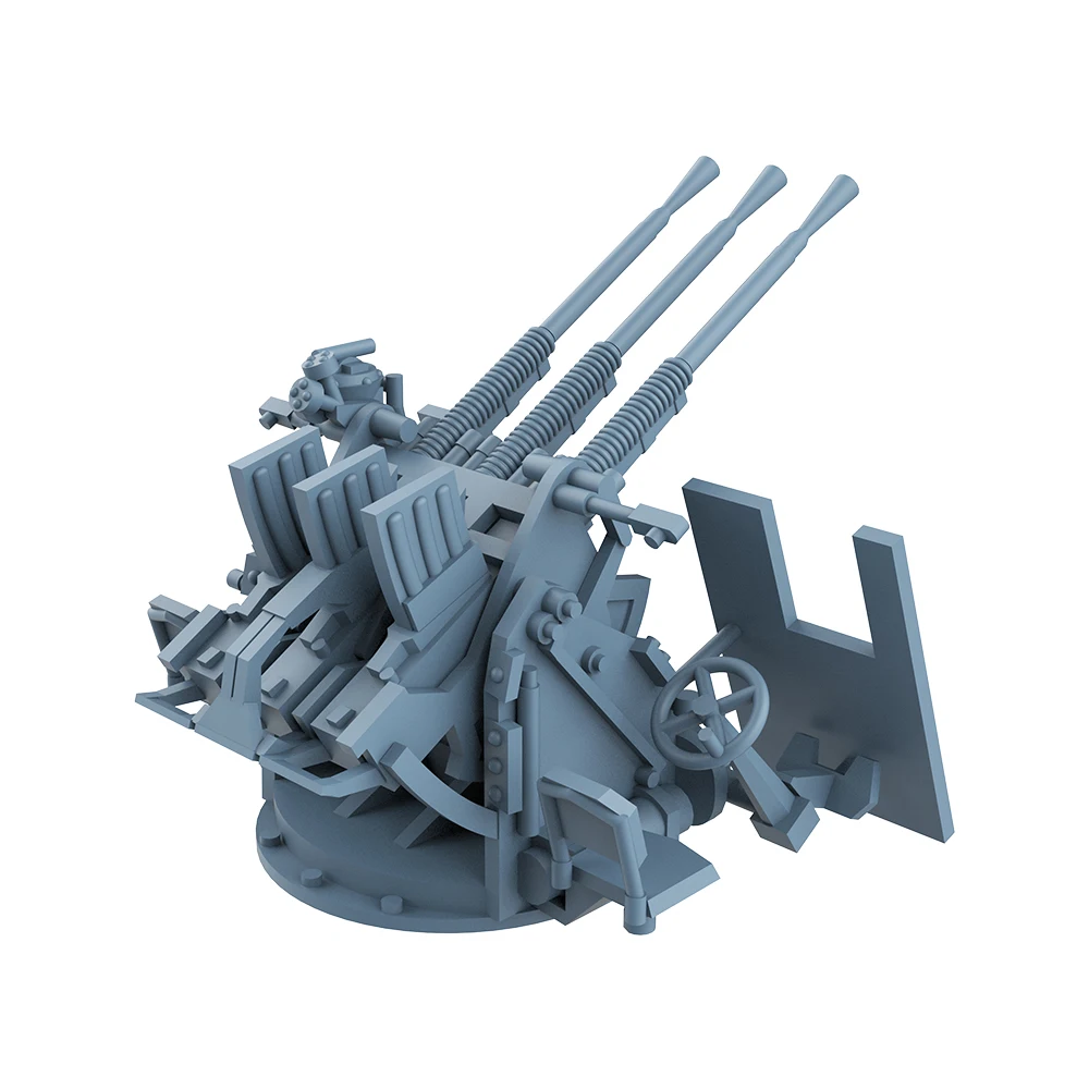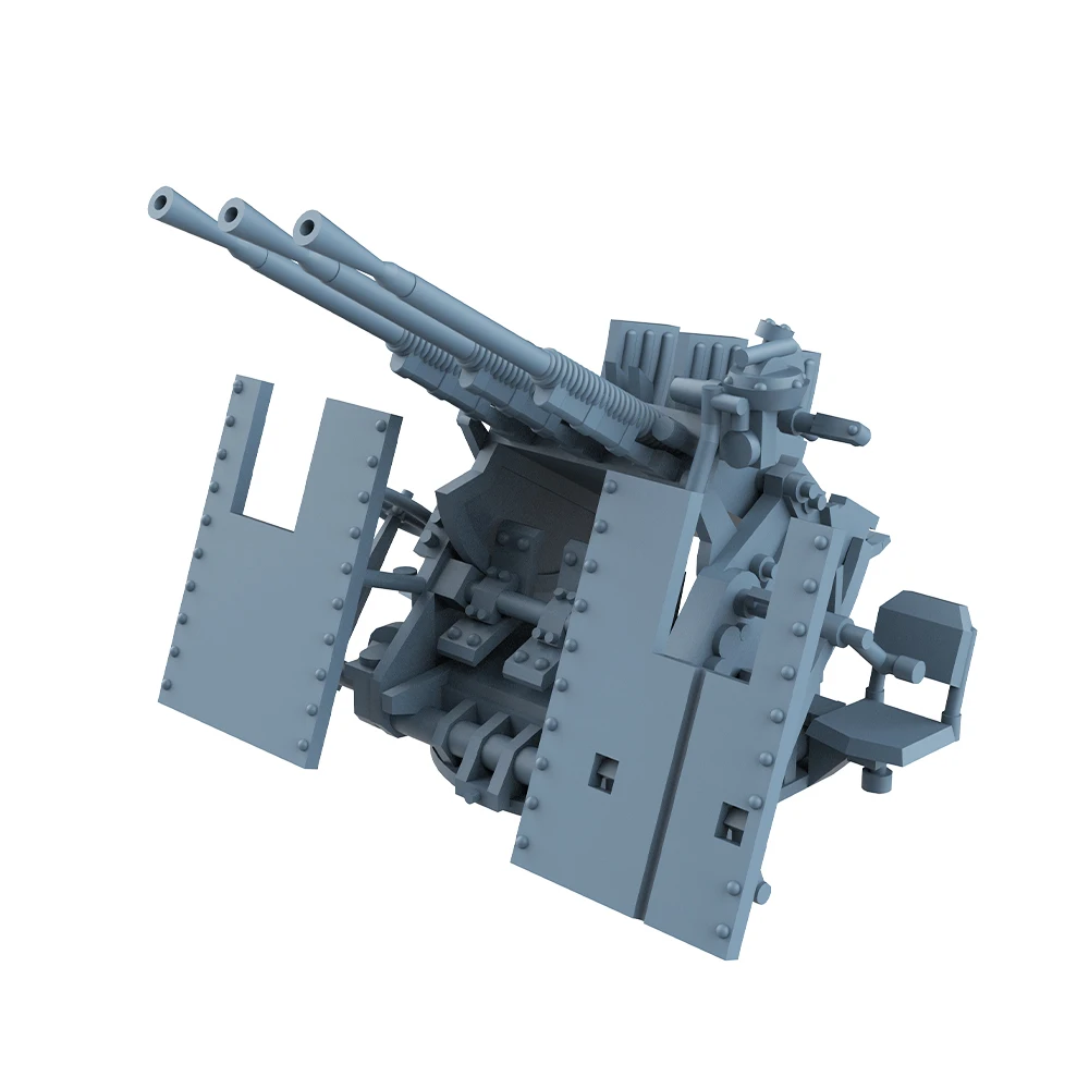 This Yao's Studio LYCG350605 upgrade set includes detailed model parts designed specifically for 1/350 scale Japanese Navy triple anti-aircraft guns with shields. Crafted from high-quality resin, these components boast a sturdy yet intricately detailed finish. The set features three long, slender gun barrels positioned slightly upwards, supported by a robust base with intricate mechanical detailing including gears. Additionally, the textured rectangular shields add to the military aesthetic with visible rivets. The monochromatic gray allows for easy customization, making it an ideal choice for model enthusiasts wanting to enhance their naval collections seamlessly.