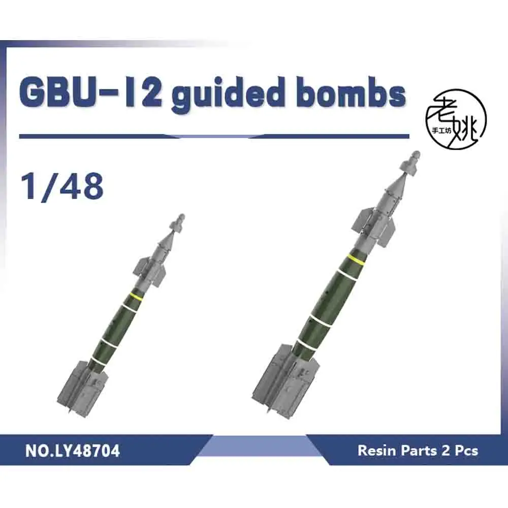 The Yao's Studio LY704 model upgrade parts showcase stunning GBU-12 guided bombs tailored for scale models in 1/32, 1/48, and 1/72 ratios. Crafted from high-quality resin, these meticulously detailed models feature a military green color scheme accented by gray components, white stripes, and a yellow indication band. The design captures the aerodynamic elegance of the bomb, featuring a long, tapered cylindrical body and prominent fins at the rear that enhance stability. This model serves as an exceptional addition for hobbyists and collectors interested in aircraft ordnance, elevating any display or diorama with its realistic aesthetics.