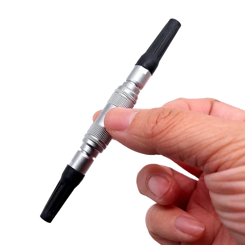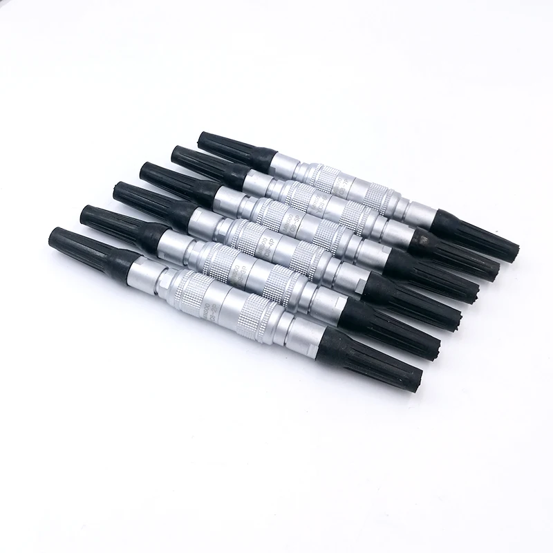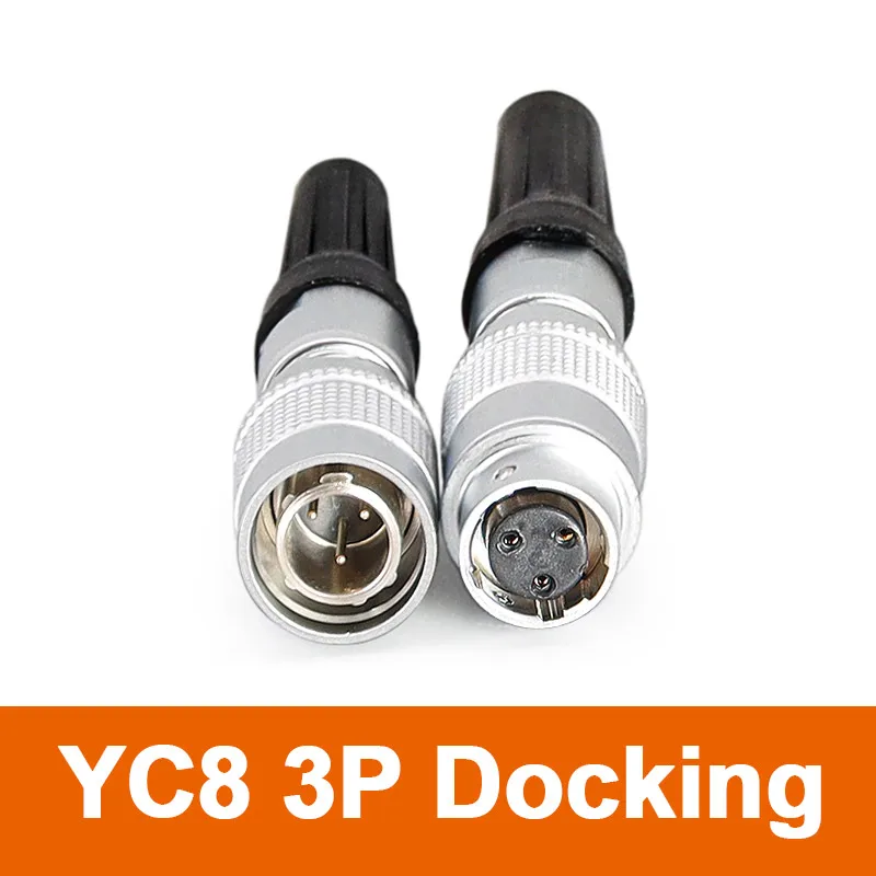 The YC8 series self-locking metal quick-connection connectors feature a sleek silver finish with a textured knurled grip and tapering black plastic tips for a modern industrial look. Available in 2-pin, 3-pin, 4-pin, 5-pin, 6-pin, and 7-pin configurations, these durable connectors operate at 48V and are CE certified, ensuring safe, secure, and rapid connections. Designed for professional and technical applications, their streamlined cylindrical design combines robustness with ease of handling, making them ideal for any setup requiring reliable electrical contact and quick attachment or detachment. Invest in these high-quality connectors for a dependable, industrial-grade connection solution.