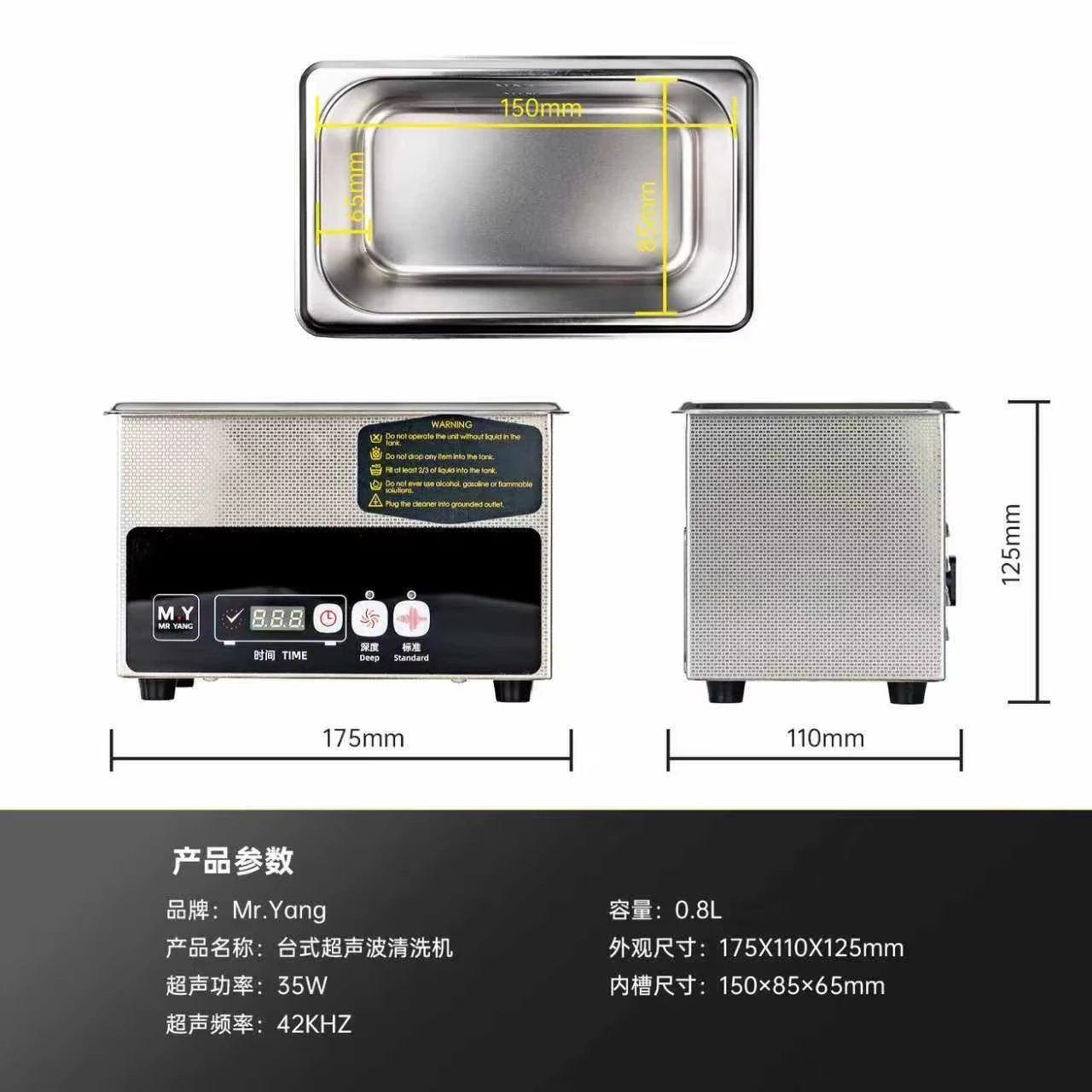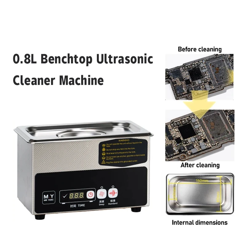 - 0.8-liter stainless steel tank provides ample space for cleaning PCB boards, motherboards, and tiny repair components.