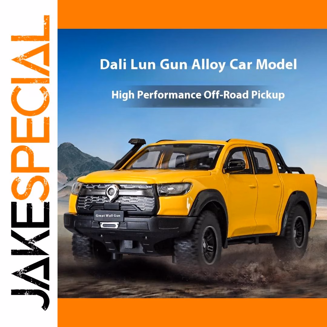 Imagine showcasing this striking yellow off-road SUV model in your collection, admired by friends and fellow enthusiasts alike. Its realistic details and functional features make it a standout piece that captures adventure and strength. Whether you're a seasoned collector or a passionate hobbyist, adding this model to your display signifies a taste for quality and craftsmanship. Don't miss the opportunity to own this impressive representation of the GWM Cannon POER. Act now to elevate your collection with this durable, visually appealing model that promises to be a conversation starter and a treasured item for years to come.