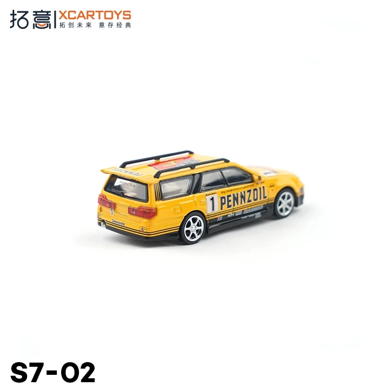Immerse yourself in the thrill of racing with this meticulously crafted 1:64 scale die-cast metal car model, model S7-02 in vibrant yellow. Designed for enthusiasts and collectors, this non-electric, CE-certified collectible showcases exceptional die-cast craftsmanship with a sleek, aerodynamic silhouette, black accents on side mirrors, window frames, and roof, and detailed racing decals. The model features a bold white racing number “1” outlined in black on the door, a yellow rear wing spoiler with black supports, five-spoke white wheels with black tires, and realistic grille and tail light details. Made from durable metal alloy, it promises both aesthetic appeal and lasting quality.