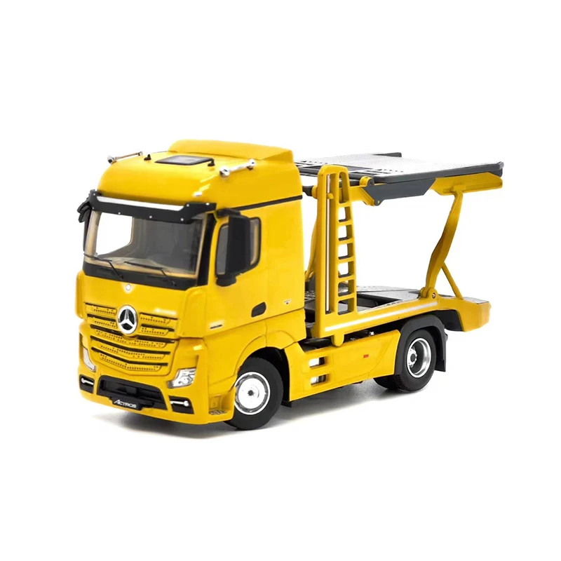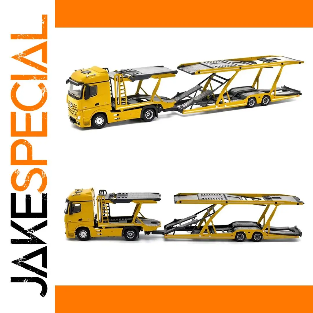 Immerse yourself in the impressive realism of this detailed yellow Benz Actros Gigaspace 4×2 semi-trailer truck. Crafted from durable metal alloy and eco-friendly ABS plastic, this scaled model measures 30 x 12 x 10 cm and weighs 0.5 kg. Its vibrant yellow finish captures attention, while intricate details such as a detailed front grille, realistic headlights, side mirrors, and rounded windows offer a lifelike appearance. The dual-level trailer features grated surfaces, support beams, and subtle black accents, enhancing authenticity. Perfect for collection, display, or as an engaging toy, this model allows you to bring a professional transport vehicle into your space with confidence and pride.
