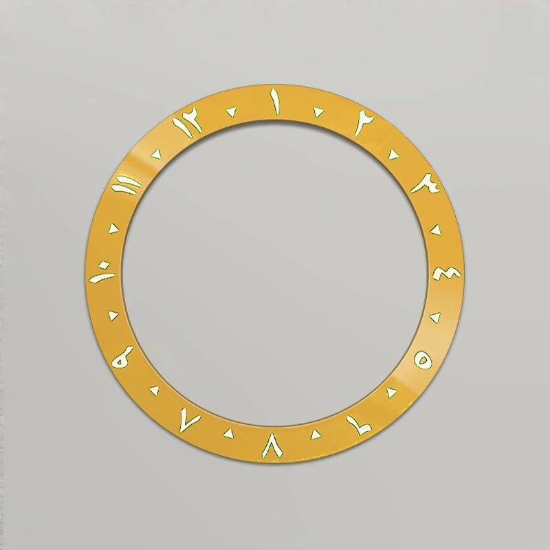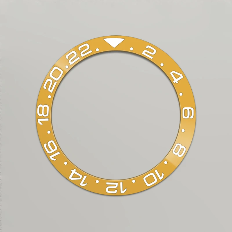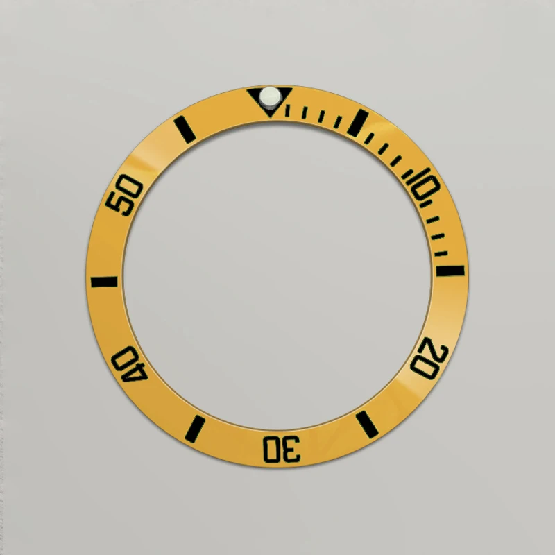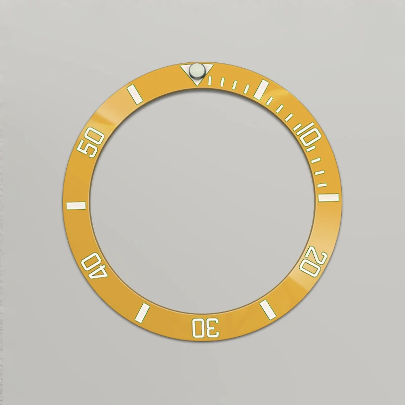 - This vibrant yellow ceramic bezel insert measures 38mm outside diameter (±0.1mm) and 30.6mm inside diameter (±0.1mm), ensuring a snug and precise fit on various watch models. Its bright hue enhances visibility and style.