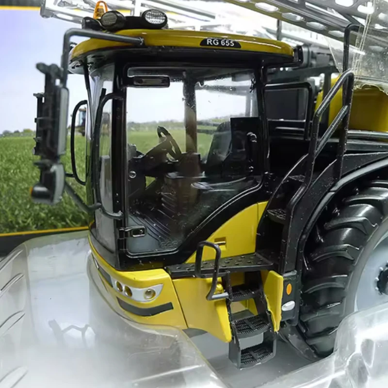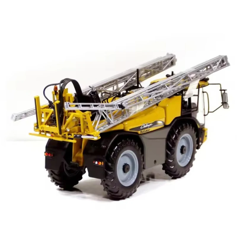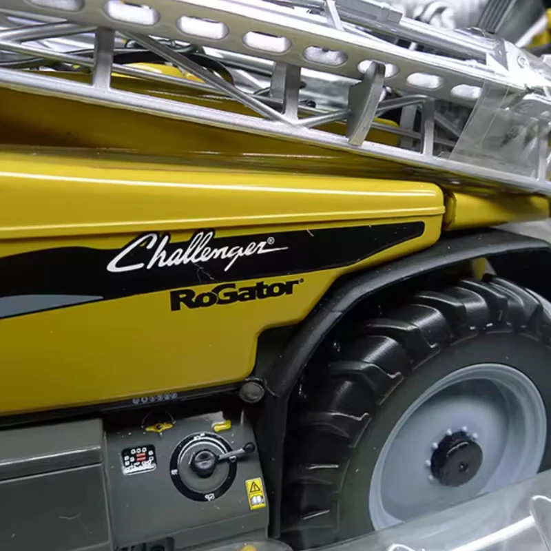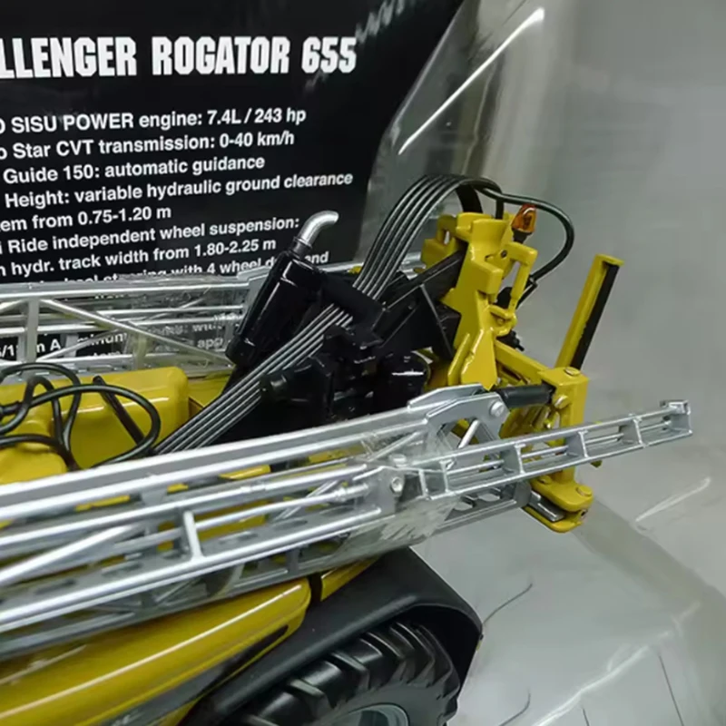 This detailed diecast model of the Challenger Rogator 655 sprayer measures approximately 35 cm in length, 14 cm in width, and 15 cm in height, scaled at 1:32. Crafted from alloy, plastic, and rubber, it features a vibrant yellow body with black accents, rugged black rubber tires with gray rims, a lifelike alloy and plastic cab with a curved windshield, and a silver lattice-style truss boom with foldable spray arms. Designed solely for static display, collection, or decoration, it offers a realistic representation of agricultural machinery, perfect for adult collectors and enthusiasts. No electrical components or batteries are included, emphasizing its role as a durable, high-quality display piece.