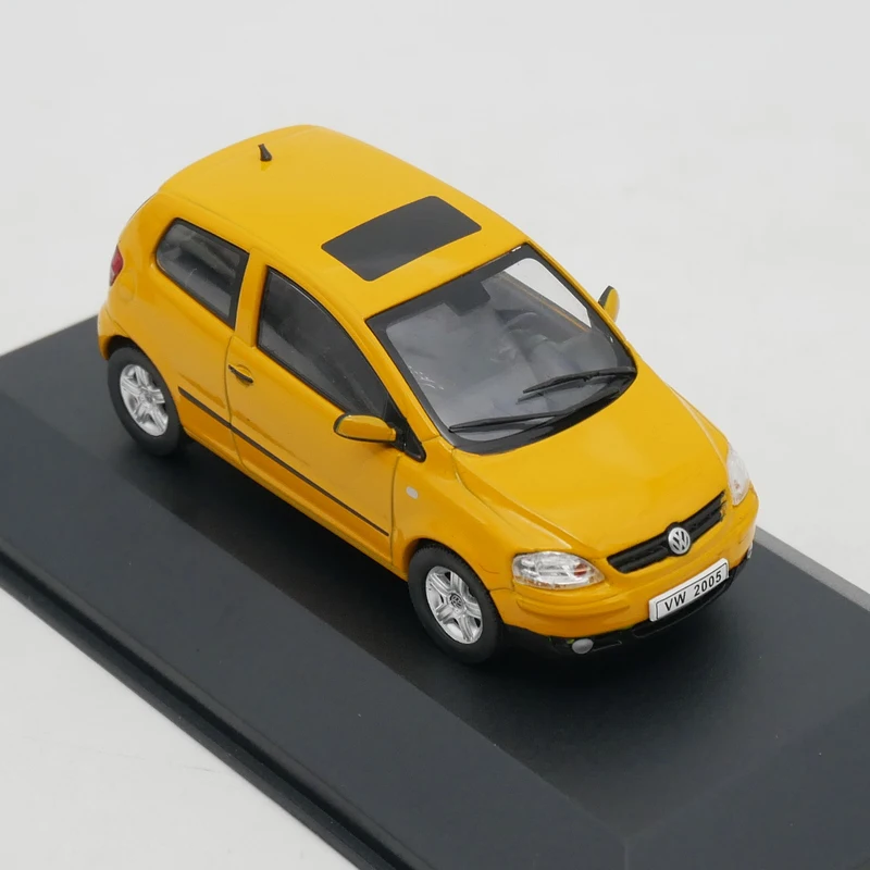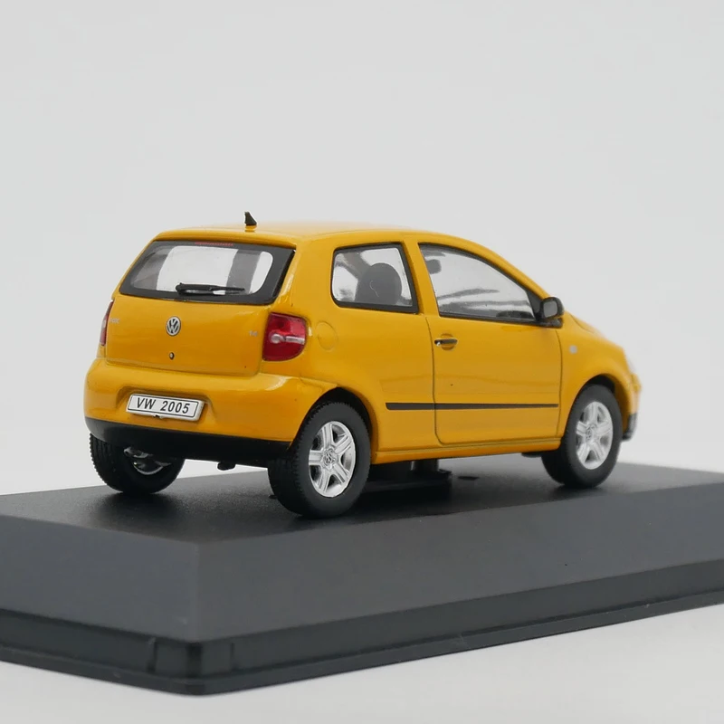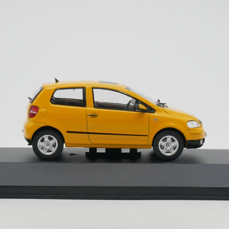 Experience the charm of this meticulously crafted diecast model of the 2005 Volkswagen Fox 1.6 in a striking, glossy yellow finish. Built to resemble the real vehicle with precise detailing, it features a sleek, rounded hatchback silhouette that captures the essence of the original. The alloy construction gives it a realistic, sturdy feel, perfect for display or collection. The clear headlights, taillights, black grille, and detailed alloy-style rims with black tires elevate its authenticity. Subtle engraved lines replicate the body panels and door seams, creating a polished, refined look. Whether for a collector’s display or as a thoughtful gift, this model combines visual appeal and craftsmanship to bring a touch of automotive elegance to any space.