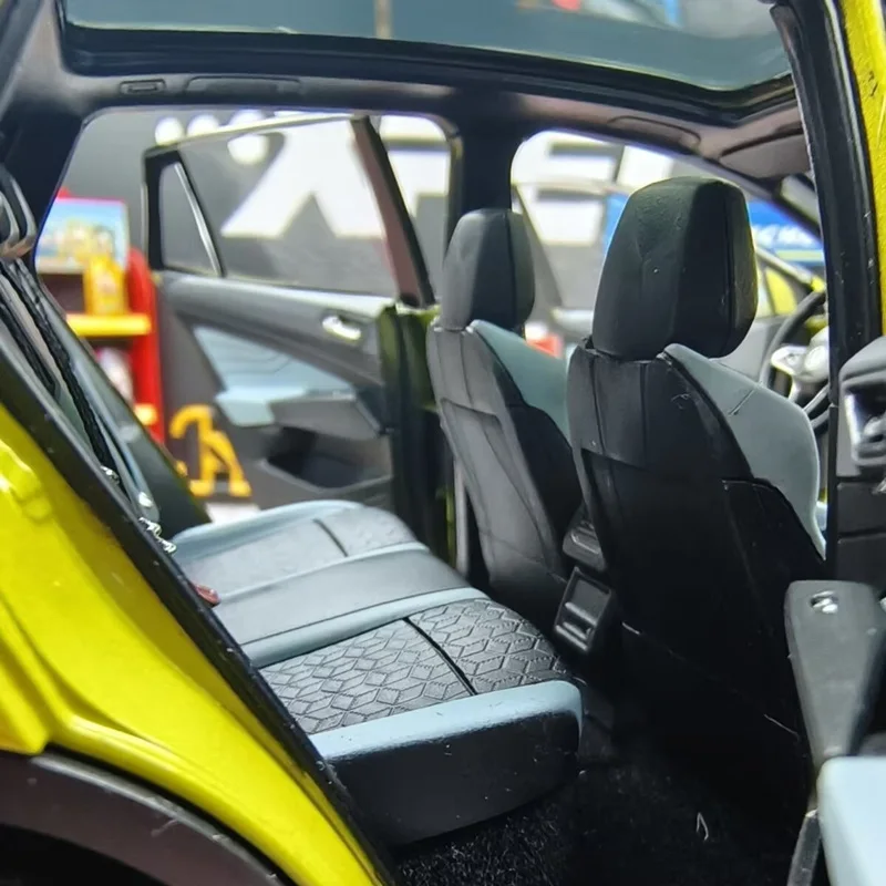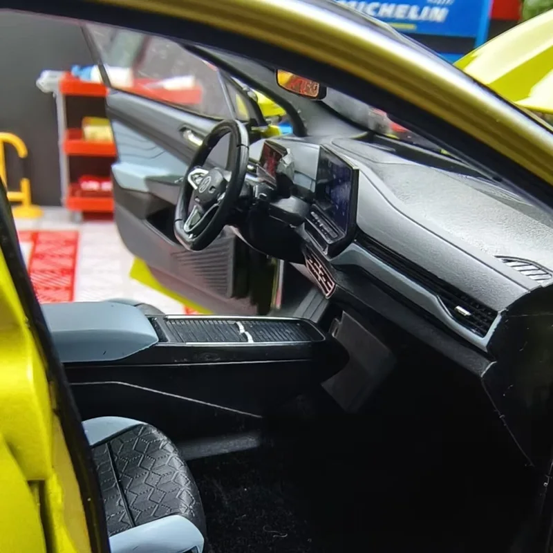 Immerse yourself in the intricate beauty of this detailed 1:18 scale diecast model of the Volkswagen ID.4X. Crafted from alloy and plastic, this static collectible captures every curve, line, and feature of the real vehicle with remarkable precision. Its vibrant metallic yellow-green finish makes it an eye-catching display piece, perfect for enthusiasts and collectors alike. The model boasts authentic details like LED headlights, black grille, flush door handles, multi-spoke alloy wheels, and tinted windows, all designed to replicate the modern aesthetic of the actual ID.4X. Ideal for display, gifting, or adding a sophisticated touch to your collection, this model combines style, craftsmanship, and authenticity in one stunning package.