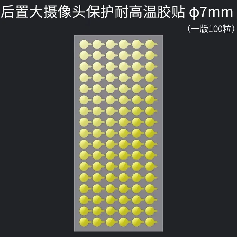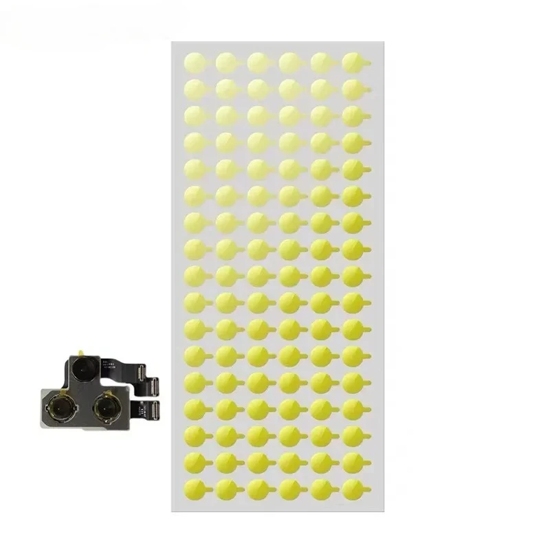 Imagine seamlessly maintaining your iPhone's camera and infrared sensors with ease. These vibrant yellow protection stickers are designed to fit perfectly on iPhone models X through 13 Pro Max, ensuring your device’s sensitive components stay safe during repairs or maintenance. The set includes 100, 200, or 500 high-quality stickers, in sizes of 5mm or 7mm diameter, providing versatile coverage. The smooth, glossy finish enhances visibility and facilitates precise application. These stickers act as a reliable shield against dust, dirt, and accidental scratches. Whether you're a professional technician or a dedicated user, these stickers offer a simple, effective solution for protecting your phone’s essential sensors and camera modules, keeping your device in optimal condition.