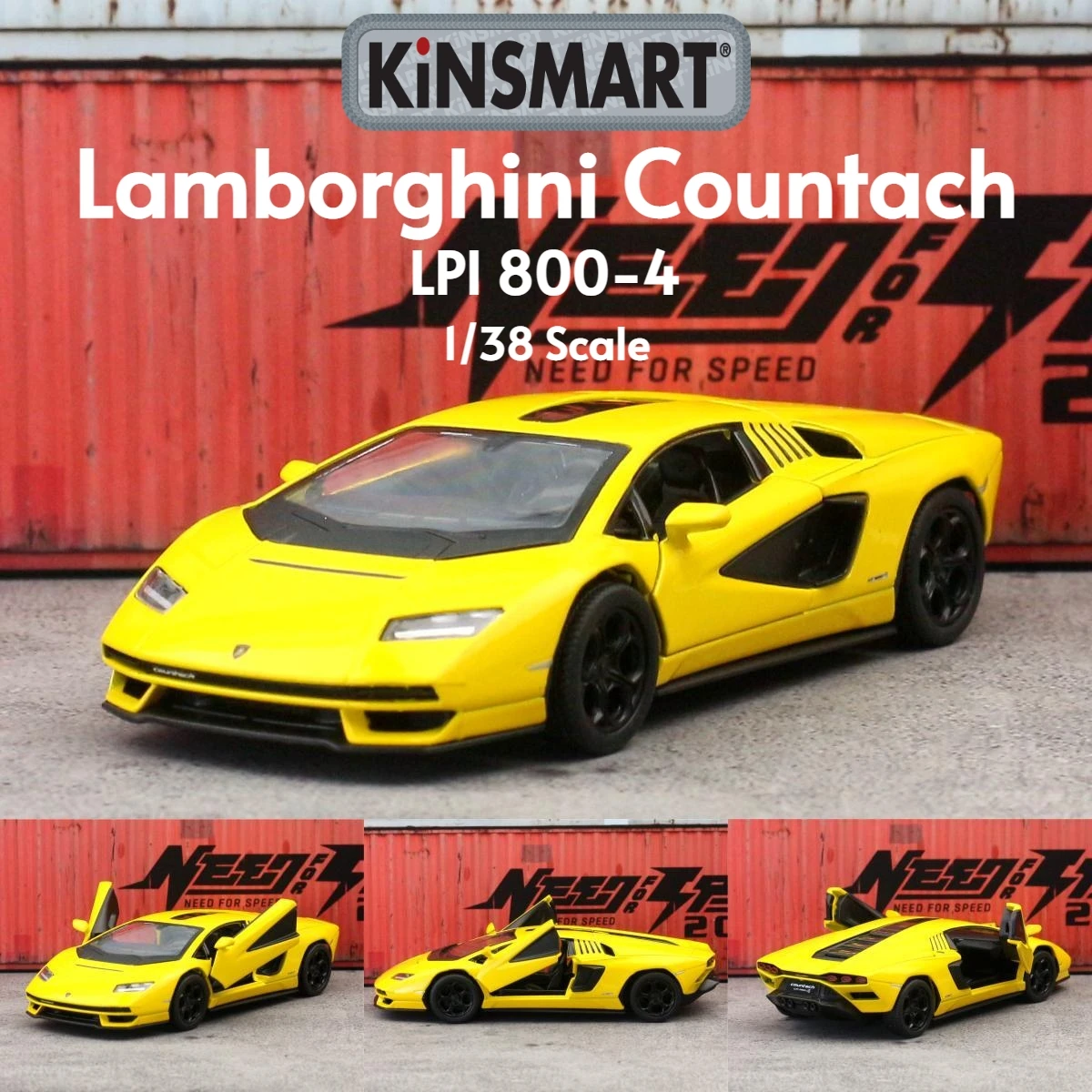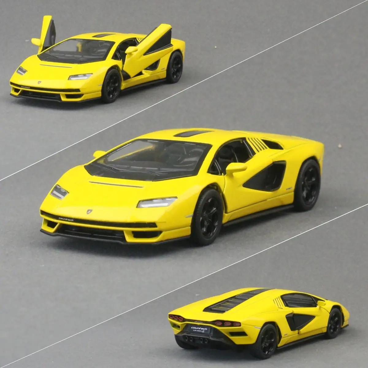 - Bright yellow finish with glossy surface that captures the vibrant, sporty aesthetic of the original Lamborghini Countach.
