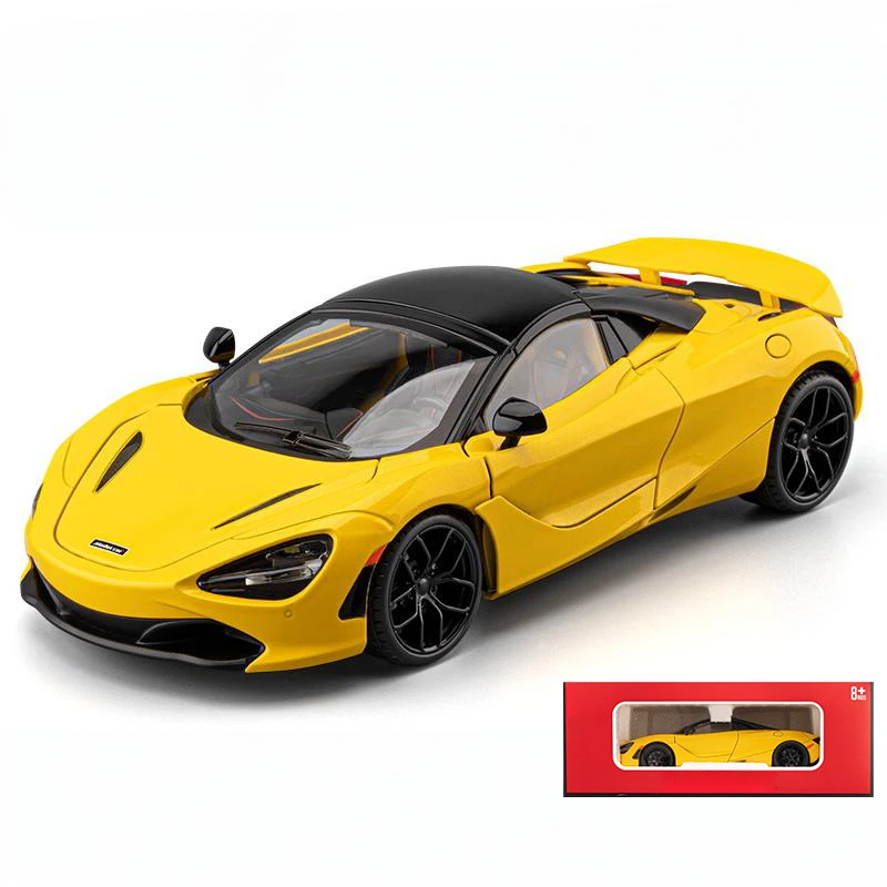 Imagine owning this striking yellow McLaren 720S diecast model and bringing a touch of automotive excellence to your space. Crafted with meticulous attention to detail, this 1:18 scale replica features a glossy finish that captures the sleek curves and aerodynamic design of the original supercar. The black accents on the sides, rear, and wheels create a daring contrast, emphasizing its sporty character. Open the gull-wing doors to reveal intricate interior details and mechanical precision, which showcase exceptional craftsmanship. The model’s rear spoiler, vents, and realistic tail lights add authenticity and elegance. Whether displayed in your hobby collection or as a stunning décor piece, this model allows you to enjoy the thrill of owning a premium vehicle in miniature form.