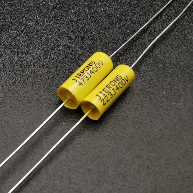 Imagine enhancing your electric guitar's tone with these vibrant yellow polyester capacitors. Designed with precision and quality, these capacitors bring a bright, crisp sound to your music. Their sleek, cylindrical shape and shining brass leads offer a visually appealing look while ensuring reliable electrical connection. The clear black lettering on the yellow body indicates precise specifications, giving you confidence in their performance. Perfect for tone modification or circuit upgrades, these high-quality components seamlessly integrate into your guitar’s electronics. Whether you’re a seasoned musician or a passionate hobbyist, this set allows you to tailor your sound with consistency and excellence. Easy to handle, durable, and visually striking, they stand out in any electronic setup.