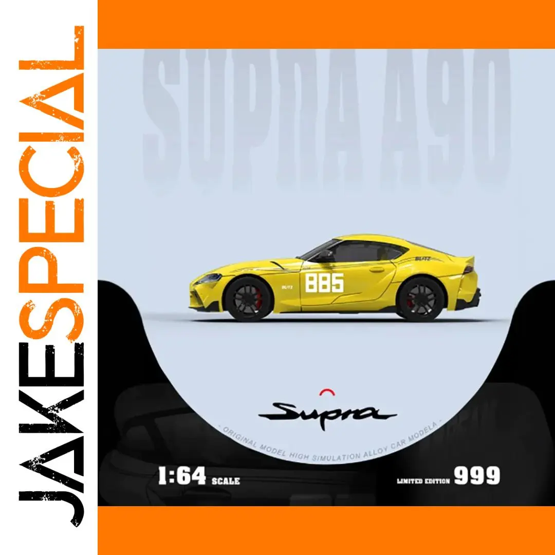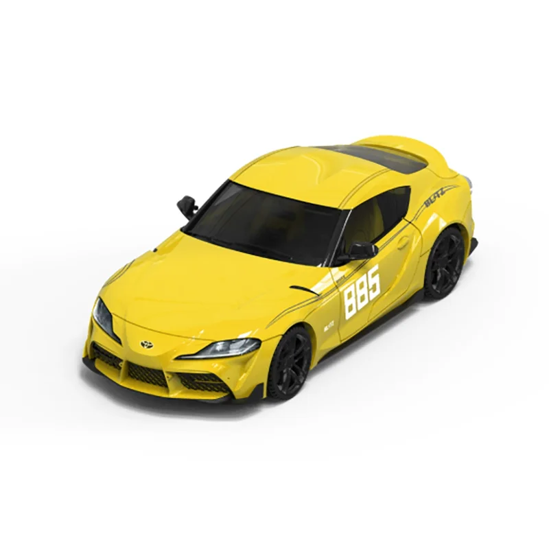 Experience the sporty elegance of this 1/64 scale Supra A90 model, crafted from alloy and plastic with a glossy yellow finish. Designed for adult collectors and enthusiasts, this detailed diecast ornament features sharp, angular headlights, contoured lines, black-tinted windows, multi-spoke black alloy wheels with red brake calipers, and racing decals like the number “885” and sponsor logos. The aerodynamic body includes subtle vents, side skirts, and an integrated rear spoiler, showcasing superior craftsmanship. Perfect for display or gifting, this static decorative piece captures the dynamic spirit of the sports car, emphasizing boldness, precision, and realism.