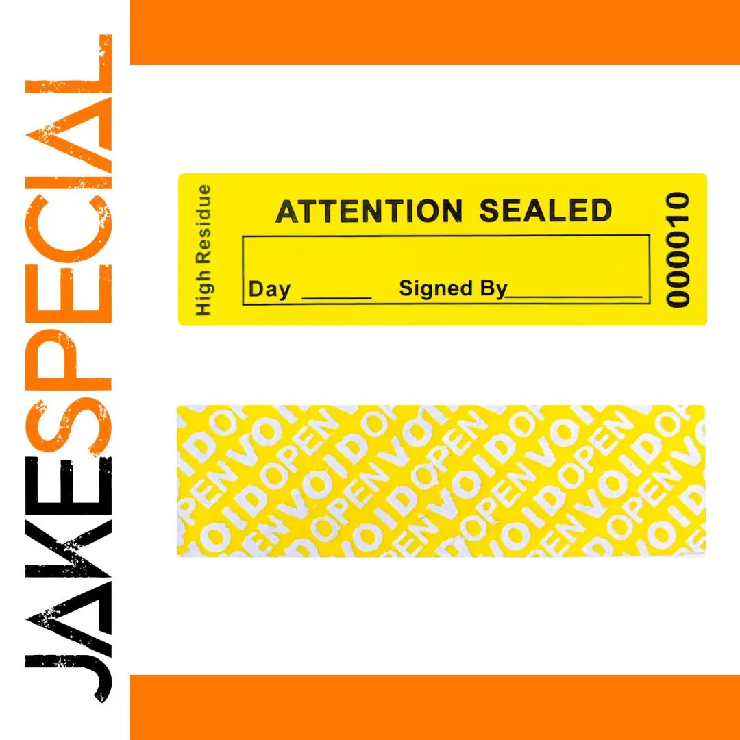 These yellow tamper-evident labels are your ultimate solution to safeguarding valuable assets. Measuring 8.5×2.5cm, these labels feature a waterproof design and a unique VOID material. Once applied, any attempt to remove them will result in an obvious tear, ensuring that unauthorized access leaves undeniable proof. Ideal for various applications, these labels can be customized with your signature or unique number, providing added security and personal touch. Embrace peace of mind knowing that your possessions are protected with these top-quality tamper-evident stickers, offering both functionality and reliability.