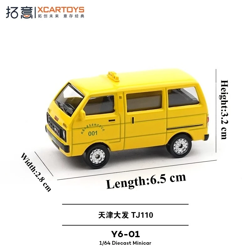Experience the charm and detail of this carefully crafted 1:64 scale diecast model of a Tianjin Daihatsu TJ110 van. With a bright, glossy yellow finish, the model exudes a lively and cheerful appearance that captures attention instantly. Its compact, boxy shape with rounded edges offers a friendly, approachable aesthetic, perfect for display or play. The transparent windows reveal detailed interior elements, while the realistic wheels with silver hubs and black tires add authenticity. Featuring subtle design lines, a sliding side door, and authentic decals including Chinese characters, the model replicates a genuine taxi or service vehicle. Whether as a collectible or a children’s toy for enthusiasts aged 14 and above, this miniature captures craftsmanship and vibrant character.