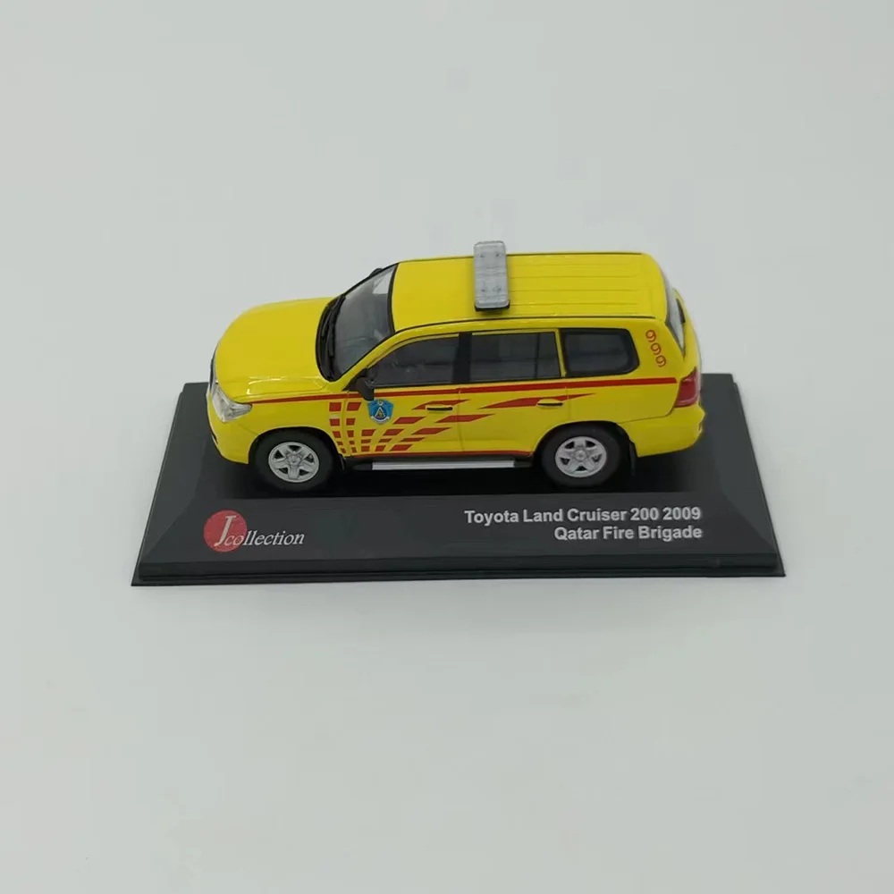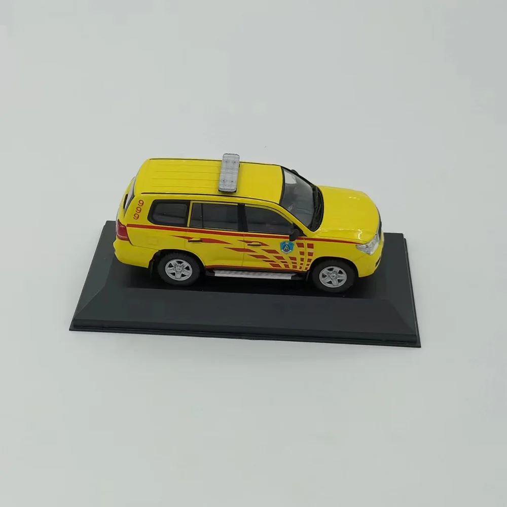This detailed die-cast miniature model captures the Toyota Land Cruiser 200 (2009-2011) as a fire truck or traffic police vehicle, scaled at 1:43 and measuring approximately 11.5 x 5.5 x 4 centimeters. Crafted from alloy, plastic, and rubber, it features a vibrant, glossy yellow finish with realistic proportions, a black front grille, side mirrors, clear plastic windows, and a silver emergency light bar on top. The tires have textured tread patterns, enhancing its lifelike appearance. Designed for collection and display, this static model is suitable for enthusiasts aged 14 and above, making an excellent addition to any display or collection.