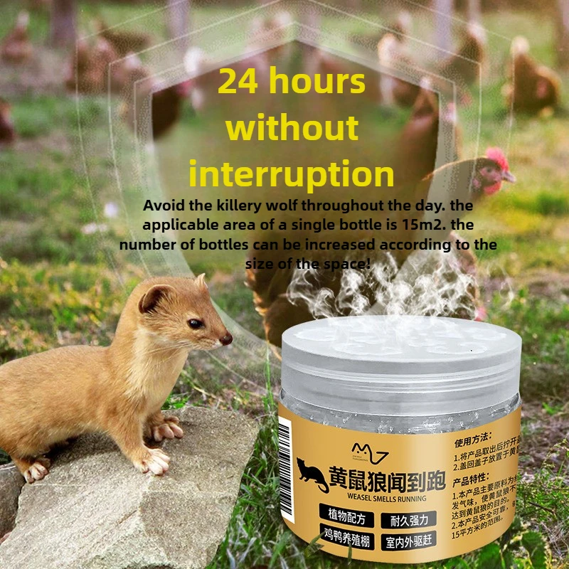 Protect your poultry with this durable plastic outdoor farm chicken repellent device, specifically designed to expel yellow weasels and prevent attacks. Available in sets of 1, 2, 3, 5, or 10 pieces, this chemical-free solution requires no batteries, making it safe and eco-friendly. Its bright yellow label on a transparent plastic container ensures high visibility, while the white, textured lid adds functional detail. Perfect for outdoor use, this effective artifact helps safeguard your chickens by deterring predators without the need for chemicals or power sources, providing peace of mind and a secure environment for your flock.