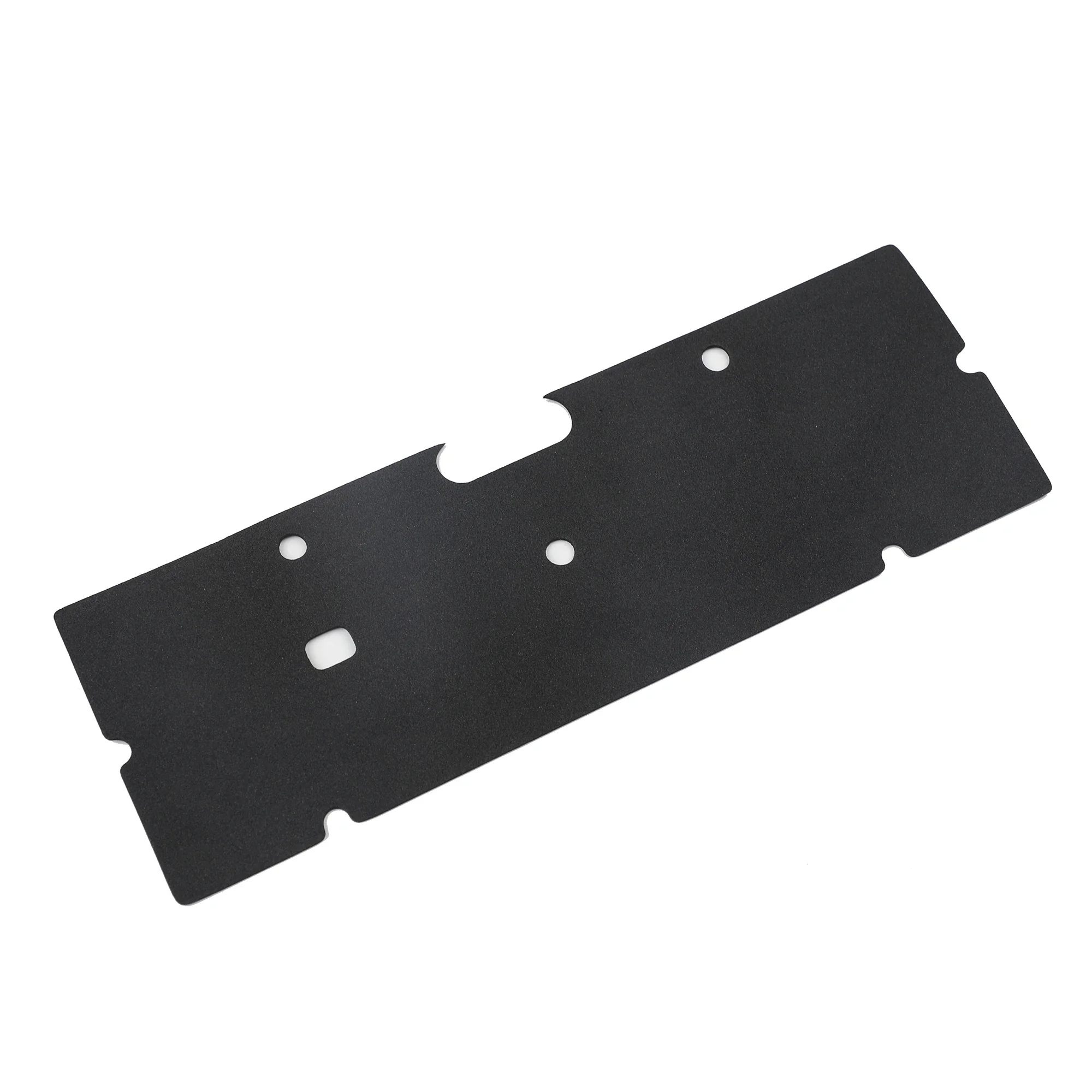 - The top foam layer, approximately 3.5mm thick, features a matte finish with a precise grid of circular and rectangular cutouts, enhancing sound absorption while maintaining a sleek appearance.