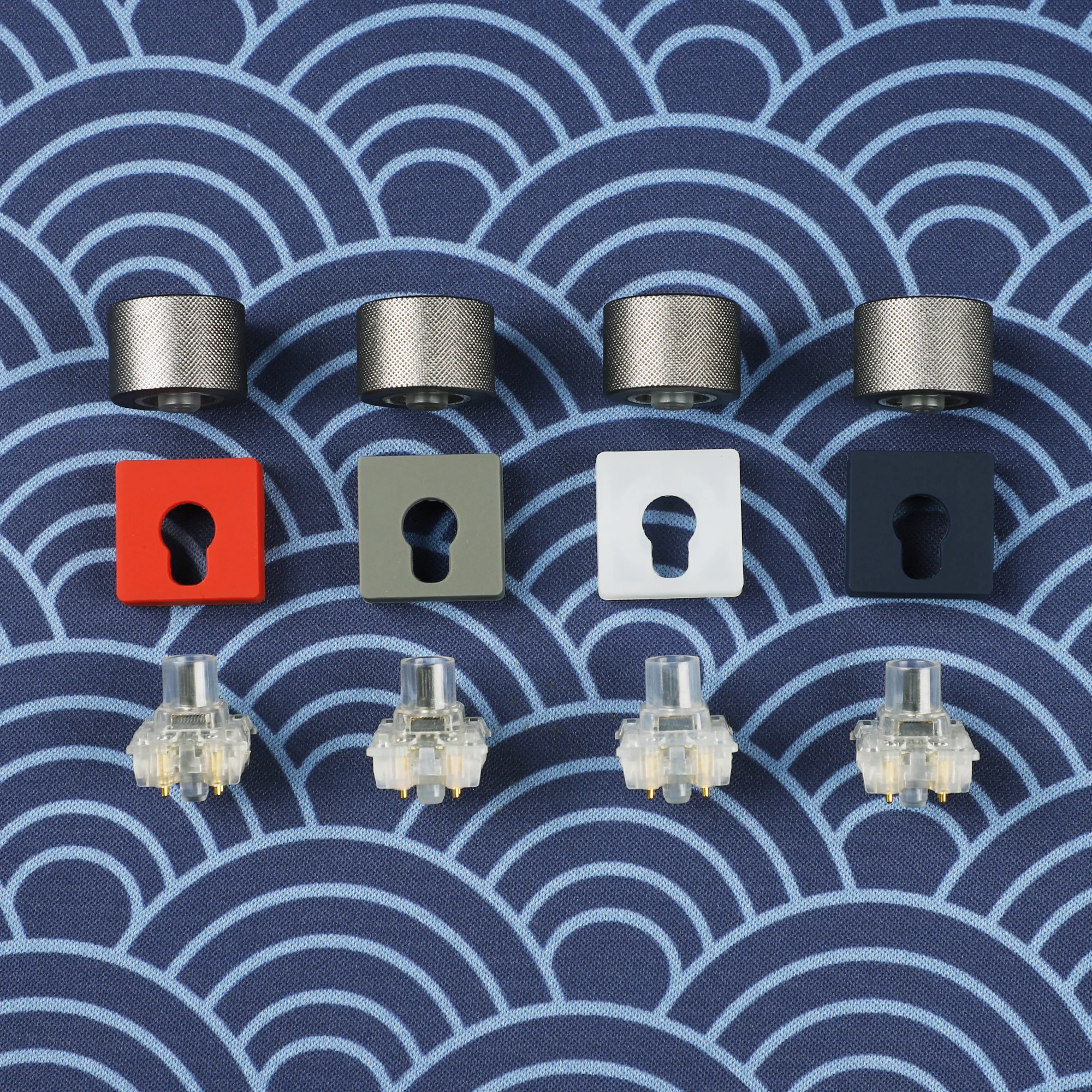 Enhance your custom mechanical keyboard with these high-quality knob switches designed by YMDK for Skyloong models like GK980 and GK75. Each set includes one durable metal knob cap with a textured, knurled surface, a vibrant plastic middle pad in options of gray, white, navy blue, or bright red, and a plastic connector with gold-plated pins for seamless installation. Choose between round caps for individual placement or cone-shaped caps for grouped knobs, catering to your aesthetic preference. Compatible with aluminum kits for seamless integration, these knobs combine industrial style with vibrant accents, offering a sleek, functional upgrade to personalize your keyboard setup.