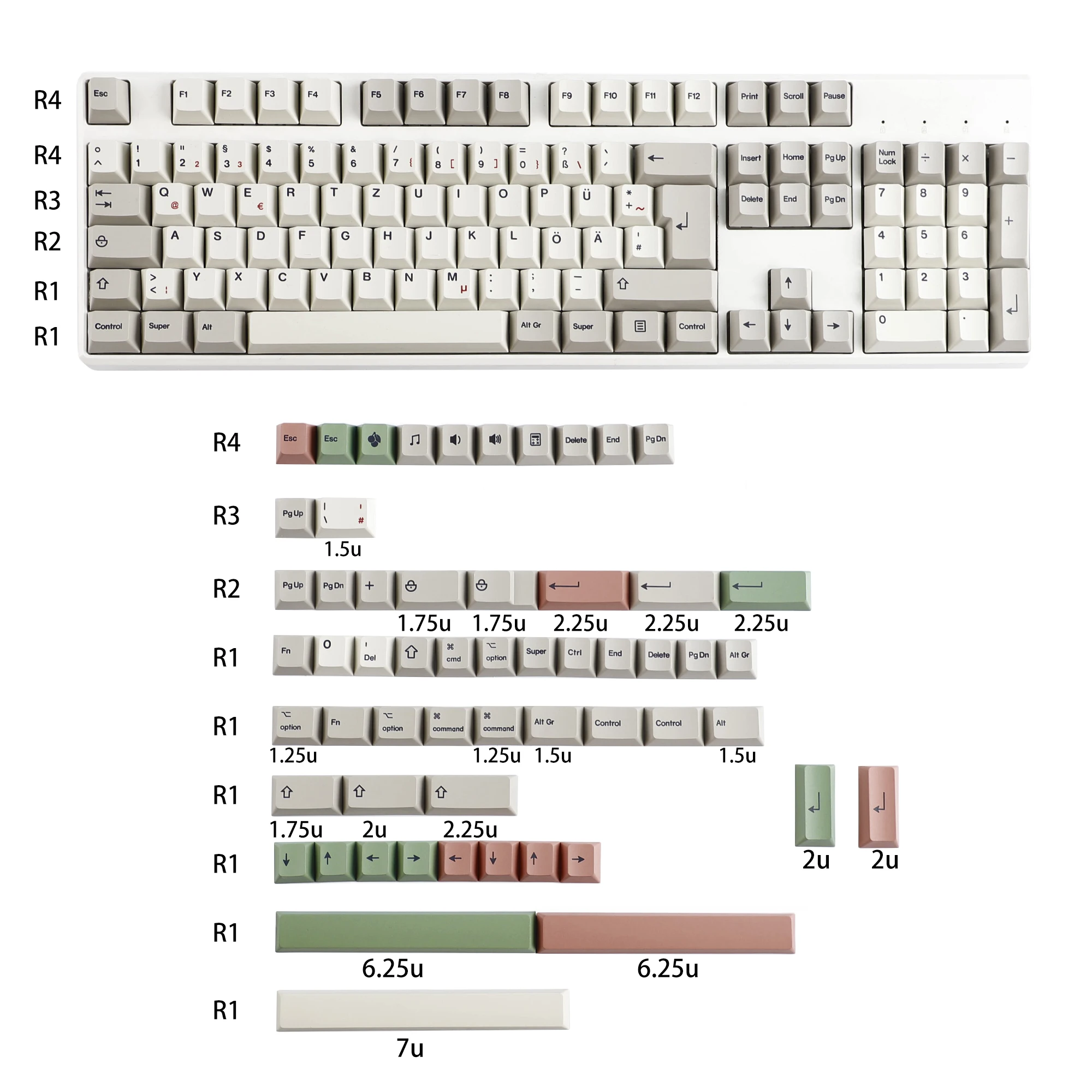 - Includes 1u/1.25u/1.5u modifier keys to suit various keyboard configurations like Tsangan and NCR80, with a precise fit for common bottom row sizes.