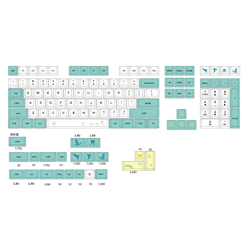 Keys features of the YMDK ZDA Matcha Keycaps set