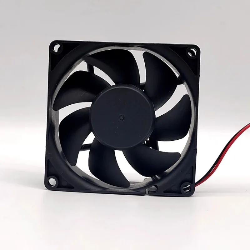 Experience reliable cooling performance with this this YTD128025B fan, designed to keep electronic components at optimal temperature. With a compact 80mm x 80mm footprint and a height of 25mm, it seamlessly integrates into enclosures, ensuring efficient airflow. Its sleek black plastic and aluminum construction not only enhance durability but also provide a modern, minimalist aesthetic. The aerodynamic blades are curved for maximum airflow, reducing noise while optimizing cooling. Equipped with a white label featuring a distinctive green stripe, it adds a subtle contrast to its streamlined design. This fan is an essential component for maintaining performance and longevity of electronic devices, especially as a radiator cooling fan or general air-cooled application.