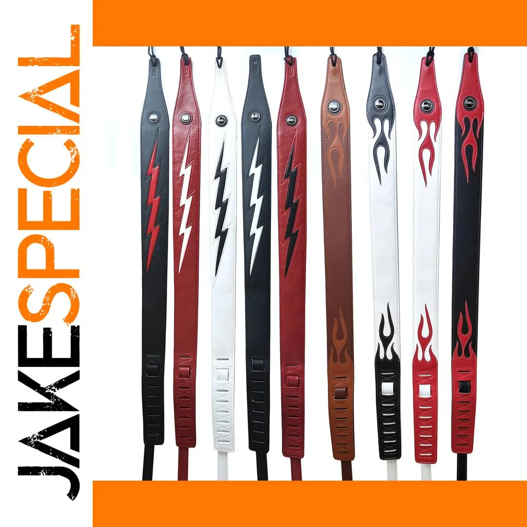 Elevate your guitar style with this versatile and durable PU leather strap, adjustable from 123-141 cm (48-55″) for flame patterns and 130-155 cm (51-61″) for lightning designs. Measuring approximately 6.3 cm (2.48″) in width for lightning motifs and 6.5 cm for flame motifs, it features bold, graphic patterns like jagged lightning bolts and stylized flames in a variety of striking color combinations including Black-Red Lighting, White Lightning, and Red-White Lighting. Weighing 300 grams with reinforced holes and adjustable black buckles, this modern strap offers both style and comfort for acoustic, electric, or bass guitar players seeking an edgy, long-lasting accessory.