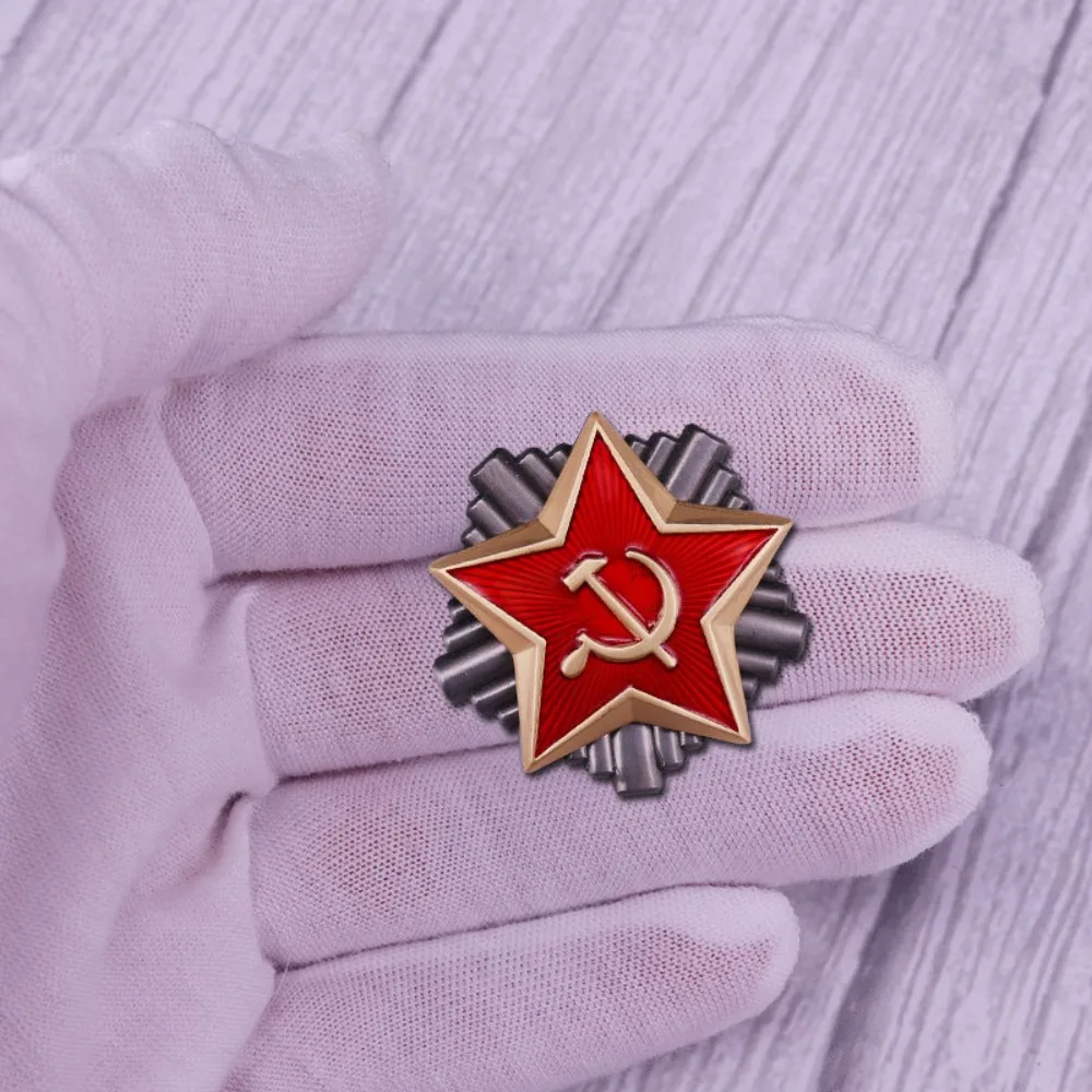 This Yugoslavia Red Star Metal Badge is an exquisite embodiment of vintage military style. Crafted from durable copper, this badge showcases a striking red and gold color scheme, with a beautifully textured surface that adds dimension. At its center lies a golden hammer and sickle emblem, reflecting a rich historical significance. The backdrop features mechanical gears in a darker metallic hue, enhancing its retro appeal. Measuring approximately 4cm in diameter, it is versatile for attachment to jackets, hats, or DIY projects, making it a perfect addition to any collection or outfit that seeks to make a statement.