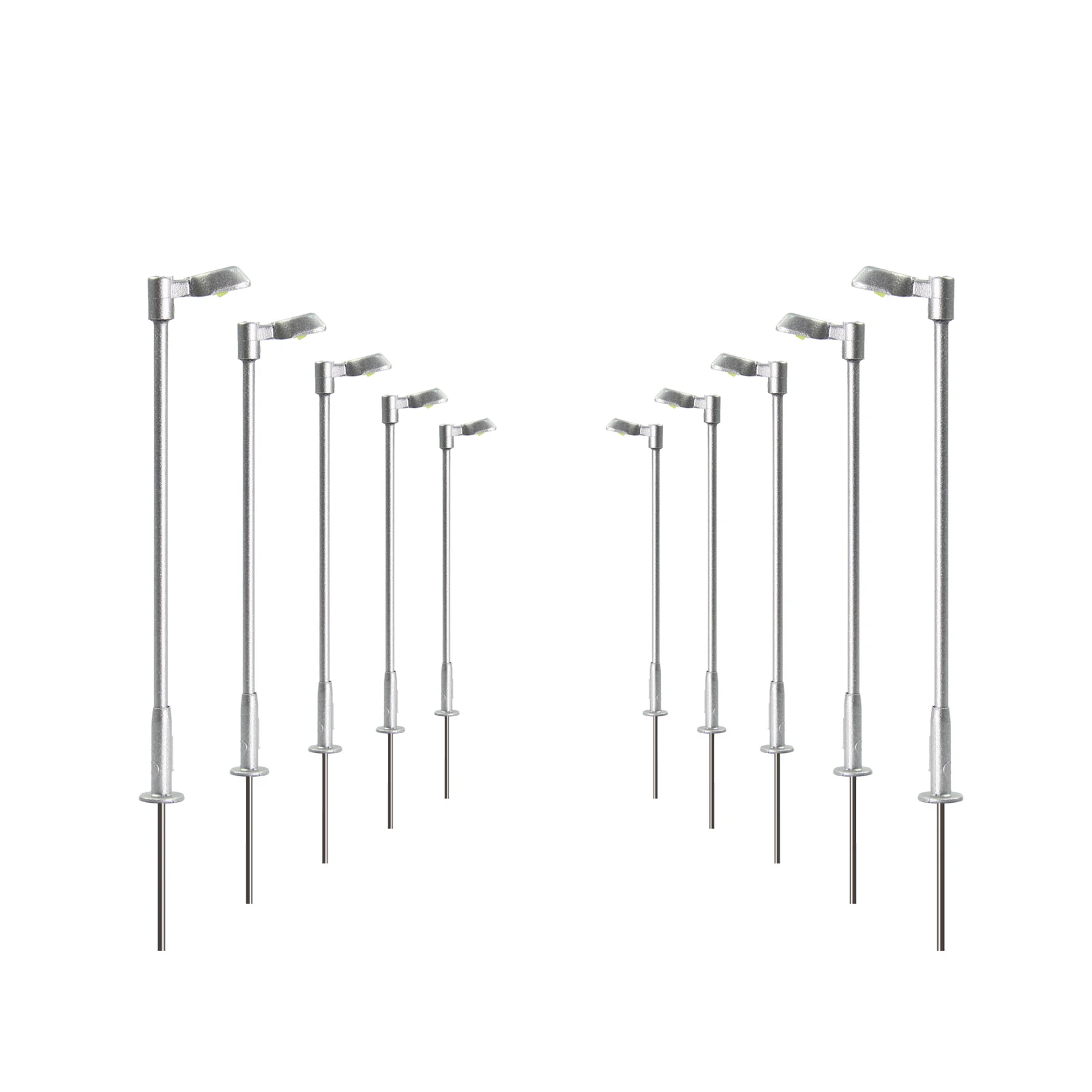 - Set of 10 miniature metal street lamps in sleek silver finish, ideal for Z scale layouts, providing a modern urban ambiance with fine detail and durability.