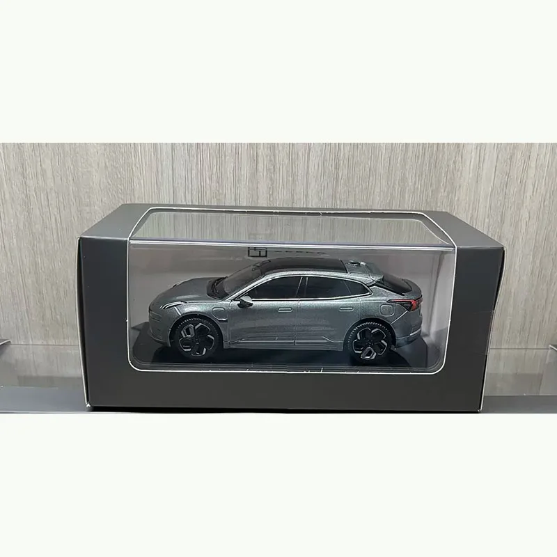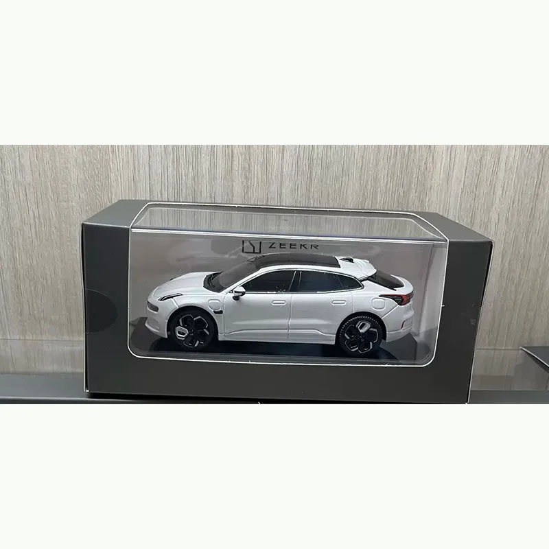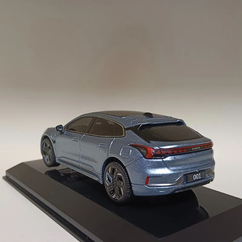 Experience the sleek elegance of the 1:43 scale diecast ZEEKR 001 alloy car model, crafted from zinc alloy with realistic plastic and rubber details. Finished with a sophisticated metallic gray or silver finish, it features contrasting black accents on the roof and side mirrors, capturing the sporty aesthetic of the modern crossover. The model showcases narrow, elongated headlights, a minimalistic grille, and sculpted aerodynamic lines along the side profile, complete with detailed multi-spoke rims and treaded tires. Designed for display and collection, this fully enclosed static model is available in elegant colors A, B, and C, making it an ideal addition to any enthusiast’s collection.