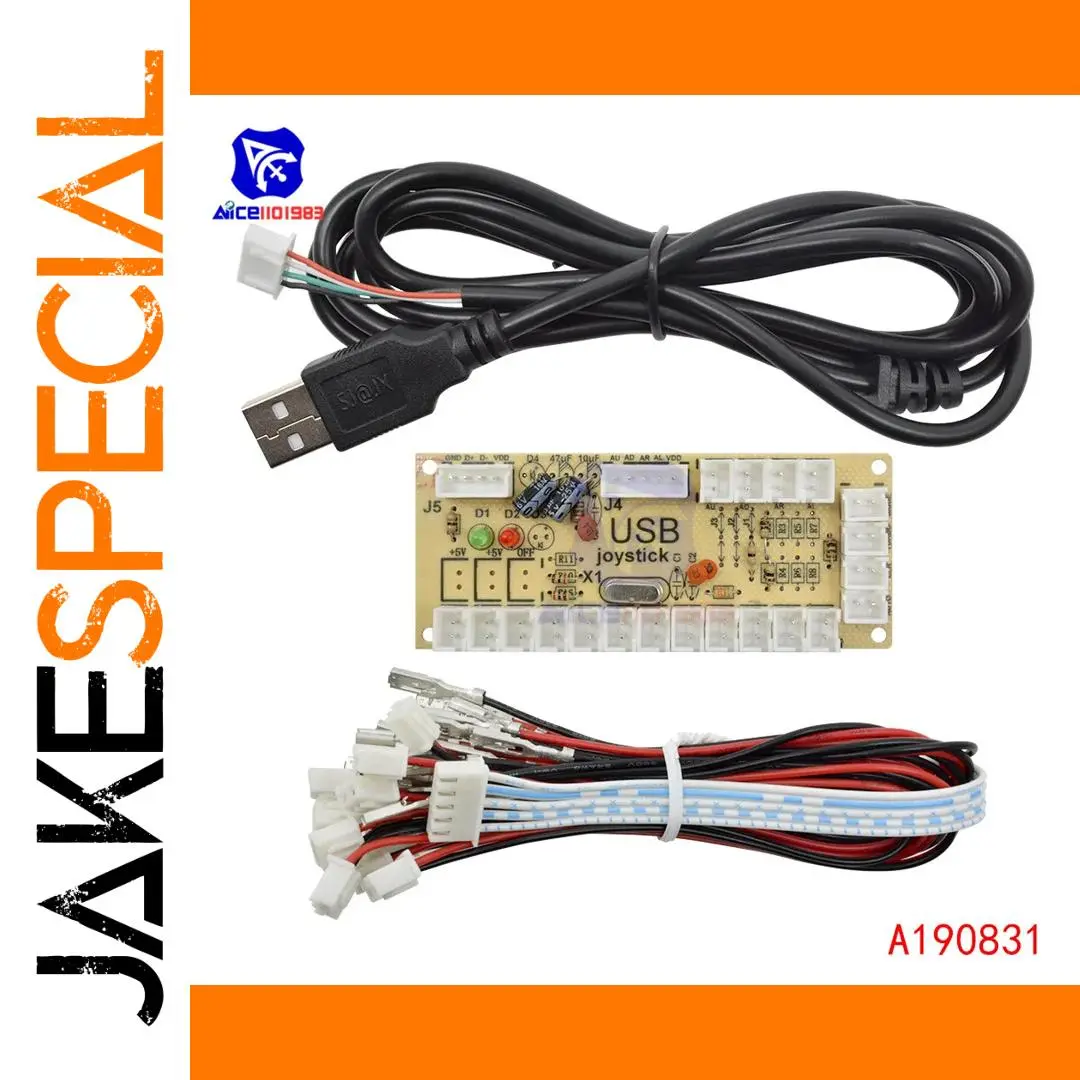 - Complete kit with a durable high-quality encoder board, a sturdy USB cable, eight 2P button plug cables, and four 2P rocker plug cables, ready for custom arcade project assembly.