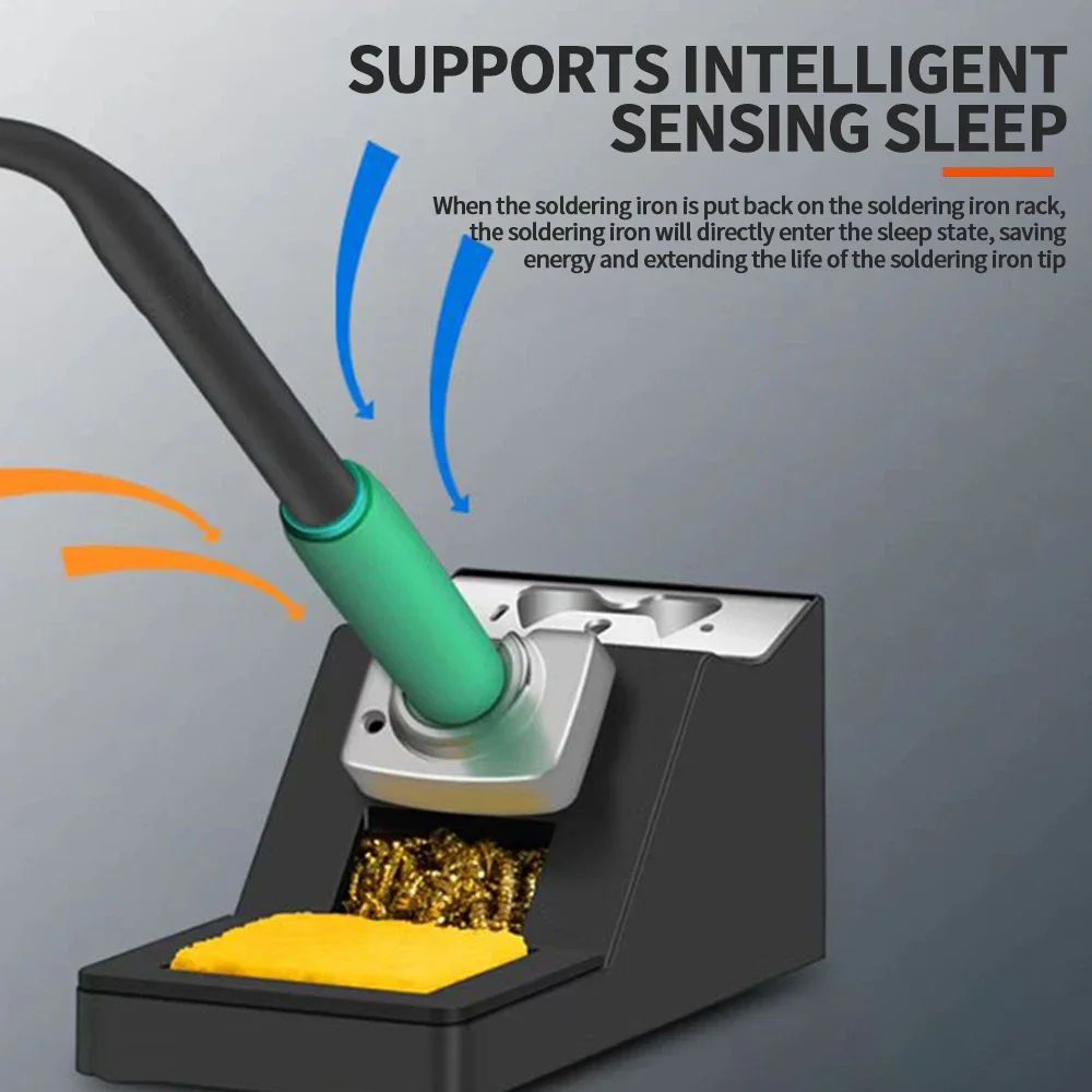 - The smart sleep mode activates automatically during periods of inactivity, with adjustable settings between 50°C and 250°C to extend tip lifespan and conserve power.