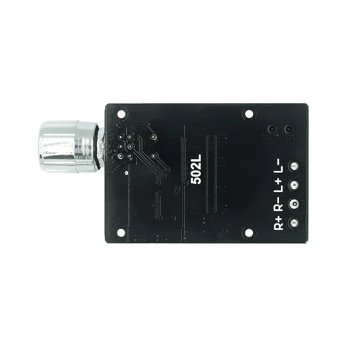 Experience the sleek, modern design of this this black rectangular PCB, known as the ZK-502L. Its matte finish and minimalist aesthetic exude sophistication, making it a perfect centerpiece for DIY audio projects. The shiny silver volume knob provides tactile control, while teal relay components add a splash of color, contrasting beautifully with the neutral tones. The large gray capacitors suggest durability and excellent heat management. Compact yet powerful, this amplifier seamlessly combines style and functionality, allowing you to create high-quality wireless audio systems. Its thoughtful layout makes installation straightforward, and the overall appearance communicates precision craftsmanship. Whether used in custom speakers or DIY sound systems, this this ZK-502L amplifier elevates your audio setup with both elegance and robust engineering.