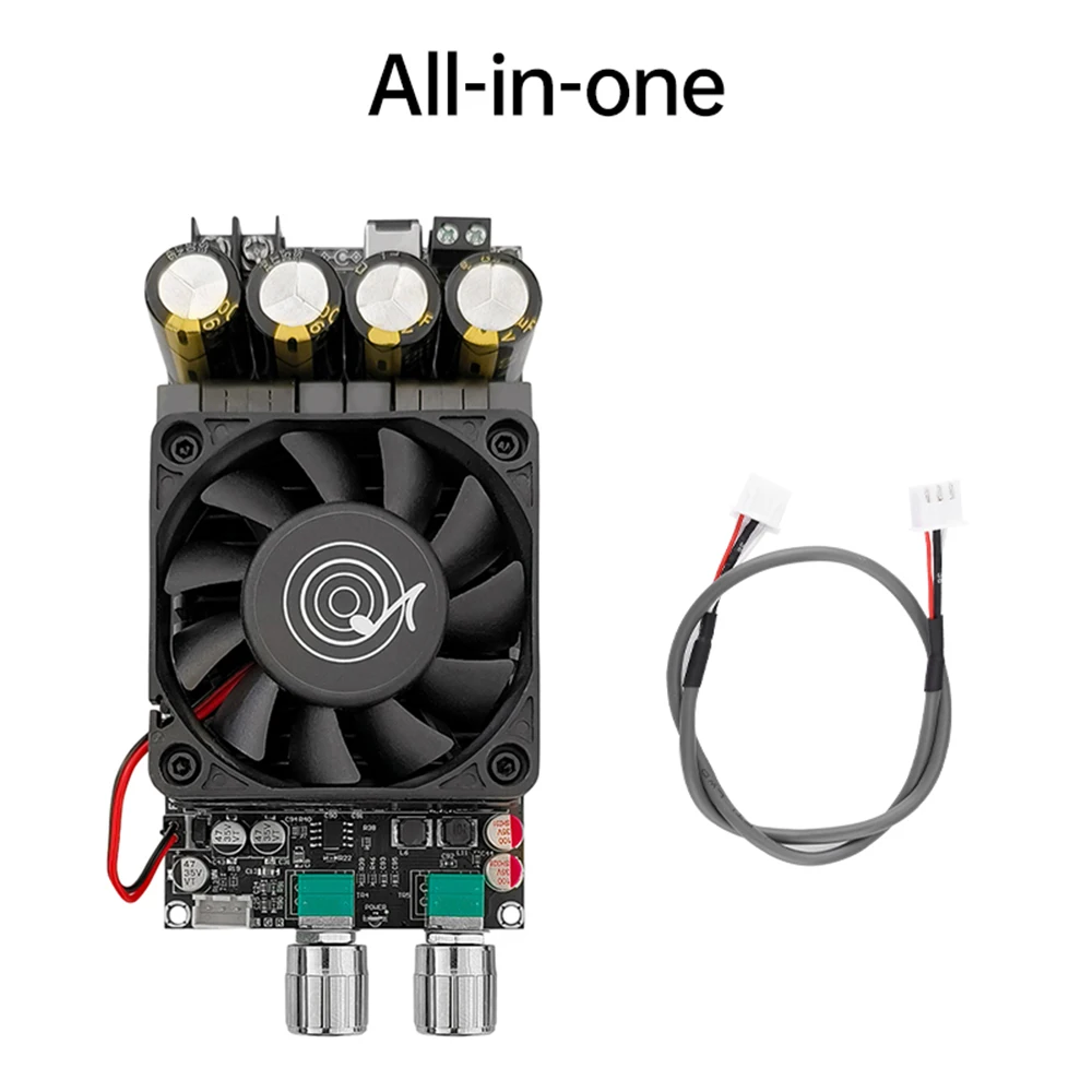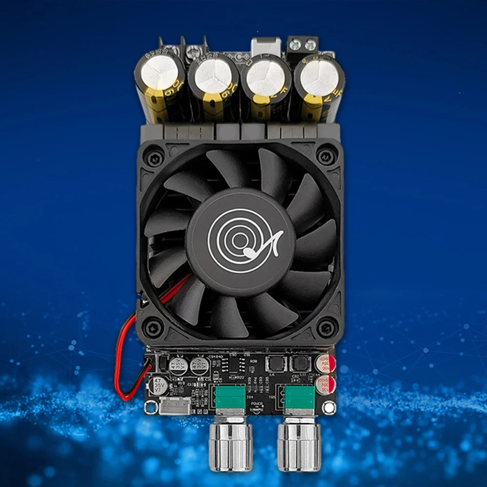 Experience powerful, clear bass with this robust ZK-6001 amplifier board. Designed for high-performance audio systems, it delivers up to 600W at 48V, perfect for driving subwoofers in large setups. Its sleek, industrial black surface, complemented by a cooling fan with a distinctive logo, creates a modern aesthetic that fits seamlessly into professional audio environments. The prominent electrolytic capacitors and well-organized circuit board highlight durability and technical precision. Equipped with protective features against short circuits, overheating, and overcurrent, this board offers peace of mind during operation. Whether you're enhancing a custom sound system or upgrading existing equipment, this amplifier provides stability, efficiency, and high-quality bass reproduction you've been searching for.