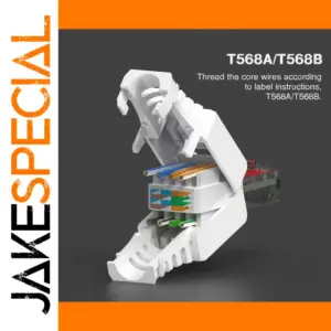 Experience reliable and high-performance networking with this reusable ZoeRax tool-free RJ45 CAT6 connector, designed for cables with 23AWG to 26AWG and a diameter less than 0.27″ (7mm). Supporting a bandwidth of 250MHz and data transmission speeds up to 1Gbps (1Gbase-T), it ensures fast, stable connections for your high-speed internet needs. Crafted with durable, gold-plated pins and a robust PCB, it is compatible with T568A and T568B wiring standards and supports Power over Ethernet (PoE+) as per IEEE 802.3 at. Its effortless, tool-free installation allows quick setup and reusability, making it an ideal choice for professional and DIY networking projects.