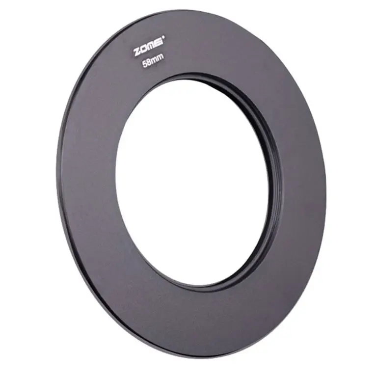 - The holder includes a metal adapter ring that securely locks onto lenses of compatible sizes—49mm, 52mm, 55mm, 58mm, 62mm, 67mm, 72mm, 77mm, and 82mm—supporting brands like Canon, Nikon, Sony, Fuji, Olympus, Minolta, and Panasonic.