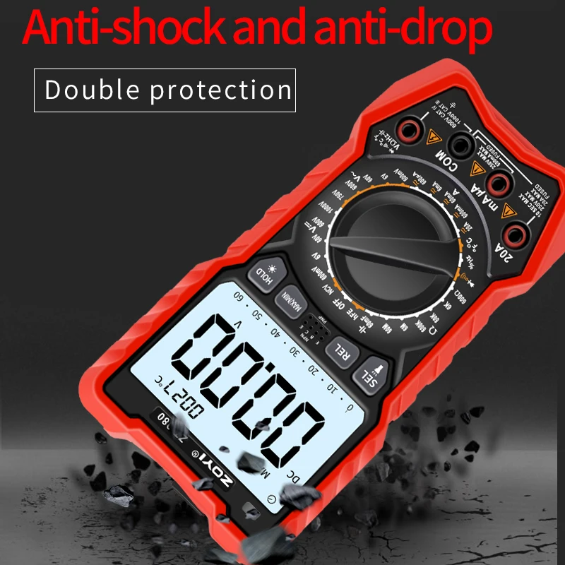 Imagine having this this ZT-980 digital multimeter at your fingertips, ready to accurately diagnose electrical issues and measure various parameters with confidence. Its sleek design features a vibrant red and black casing, providing durability and visibility in any workspace. The large 9999-count digital display delivers clear, precise readings including true RMS measurement, making your testing more reliable. Its intuitive interface includes a rotary switch for quick mode changes and dedicated buttons for easy access to functions like hold, maximum/minimum, and backlight. Compact yet powerful, this multimeter seamlessly fits into your toolbox, helping you troubleshoot electrical systems efficiently and safely. Elevate your professional or DIY projects with this reliable device today.