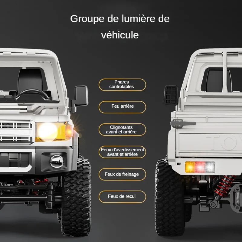 Experience thrilling off-road adventures with the ZWN 1:12 Full Scale RC Car MN82 PRO, a highly detailed and durable remote-controlled pickup truck designed for adult enthusiasts. Featuring upgraded controllable headlights, turn signals, brake, reverse lights, and a powerful 4WD system, this model delivers impressive performance on rugged terrain. Its realistic design, 25-minute battery life, and remote control with a 50-meter range make it perfect for challenging outdoor explorations. Crafted from quality metal and plastic, this nearly ready-to-run vehicle promises hours of immersive fun, whether you’re pushing boundaries on rough trails or displaying it as a collector’s gem.