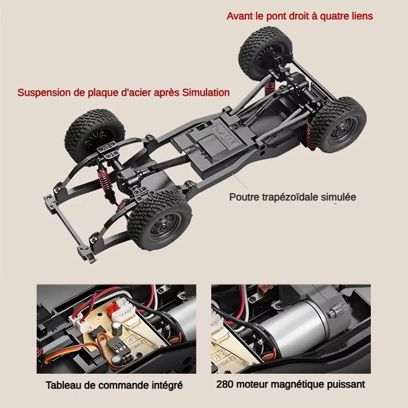 - Built with a high-performance 280 motor and waterproof steering gear, assuring excellent traction and control on rocks, mud, sand, and rugged mountain trails.